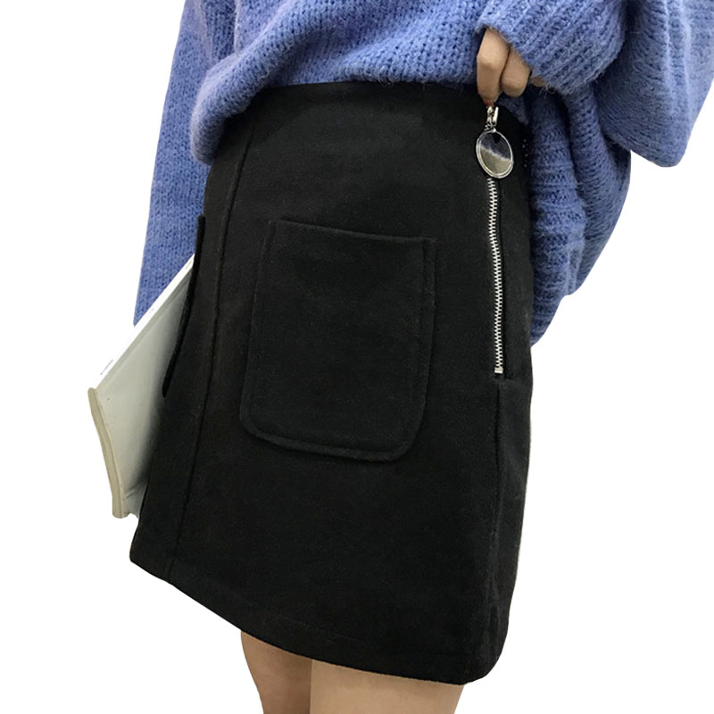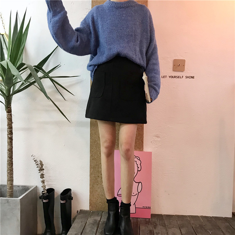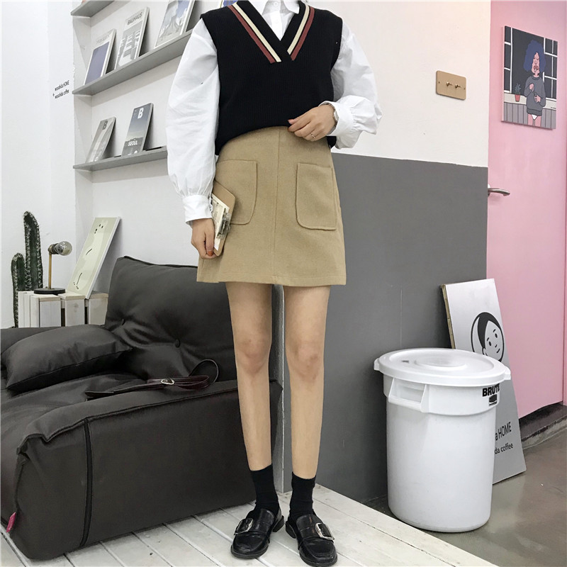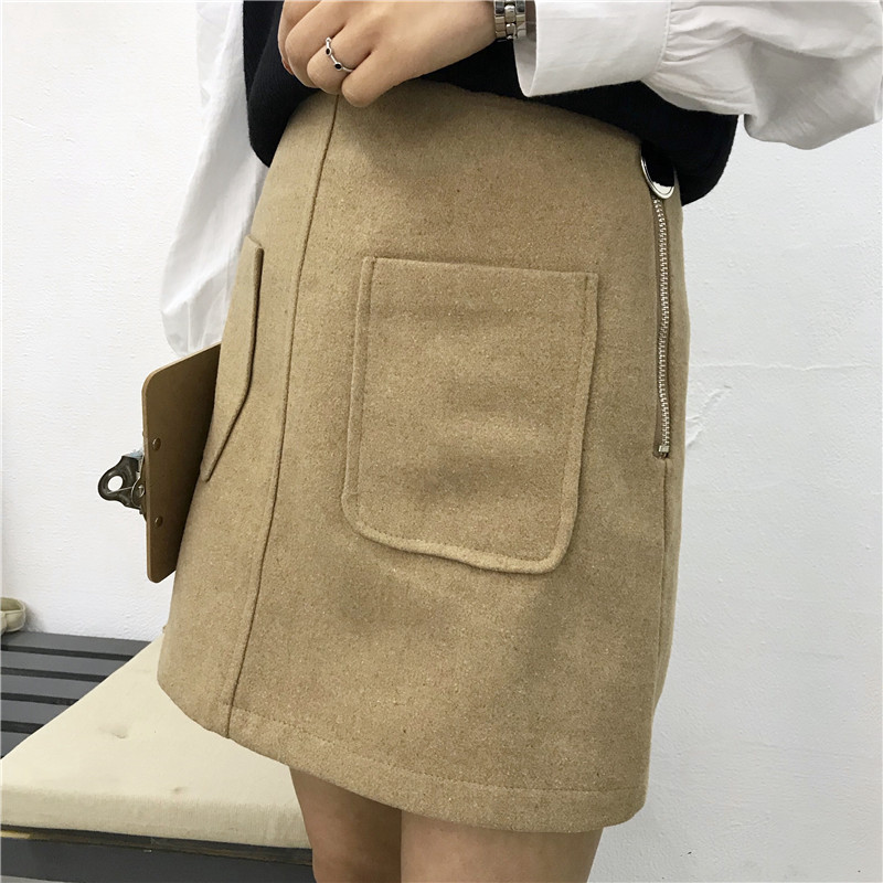 / 秋冬女裝韓版寬松側拉鏈包臀裙毛呢A字裙高腰半身裙短裙學生裙子