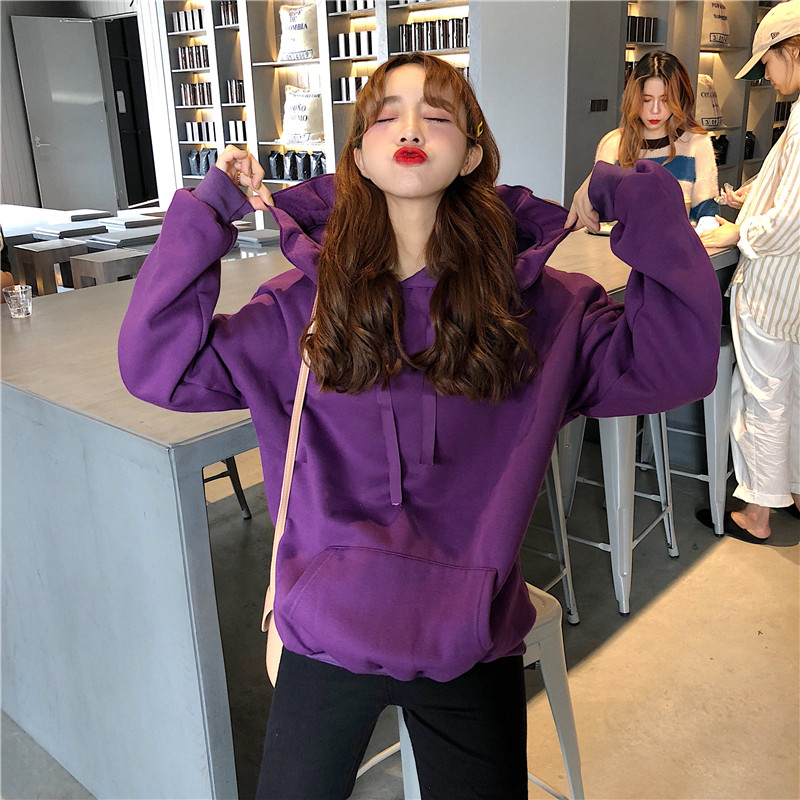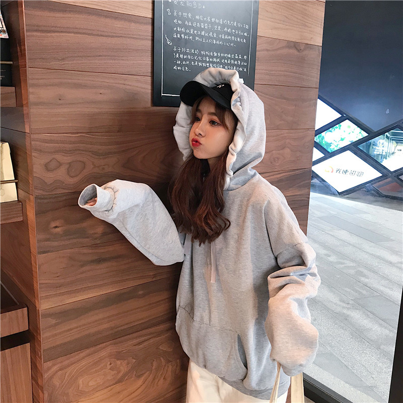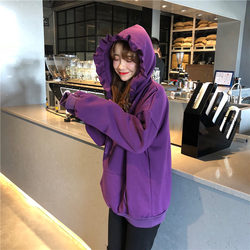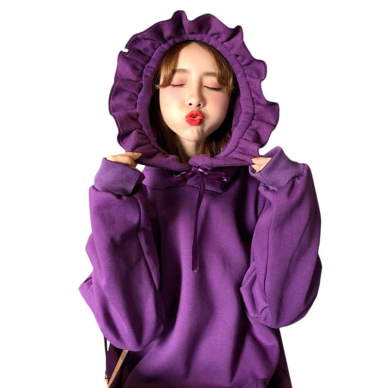 / 2018新款秋冬韓版連帽荷葉邊寬松加絨套頭pp home超火衛衣外套女