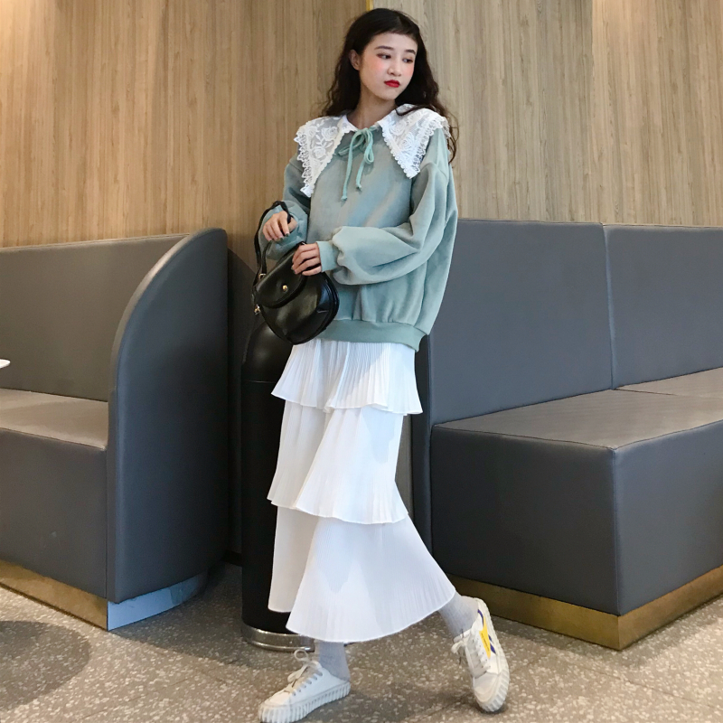 拼接的蕾絲花邊領增添了甜美又俏皮的味道