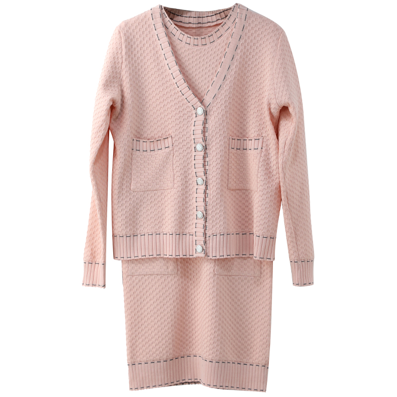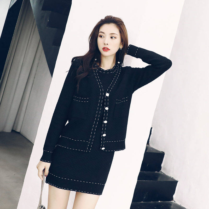 / 春秋2018港味chic針織衫外套緊身名媛風氣質小香連衣裙兩件套套裝