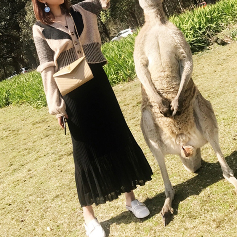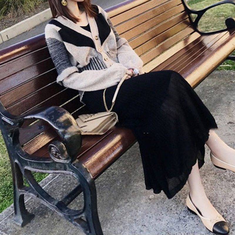 / 秋裝女2018新款chic早秋連衣裙法式少女茶歇裙毛衣裙子兩件套裙