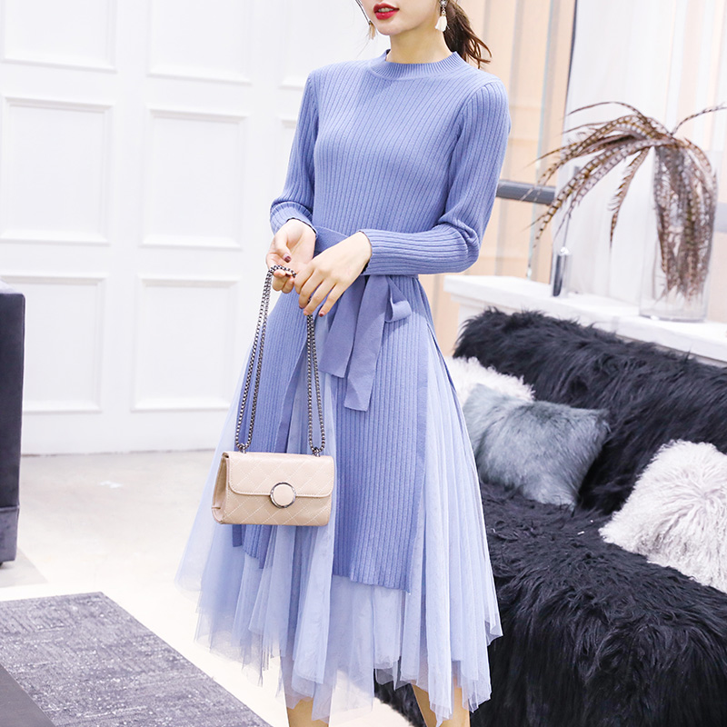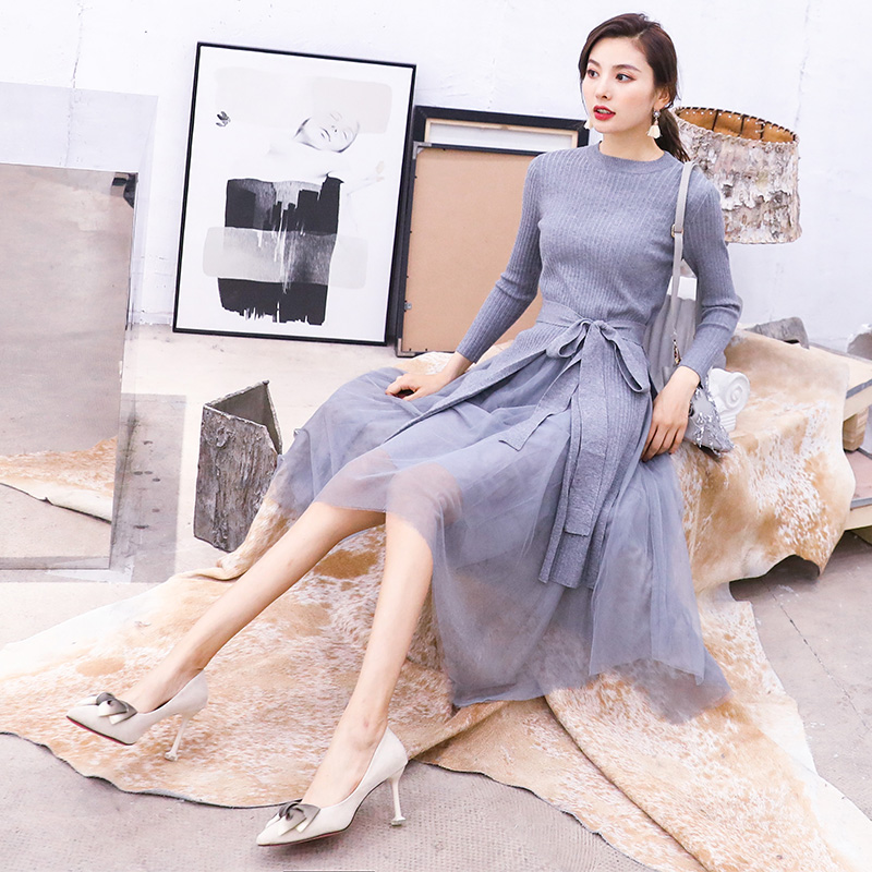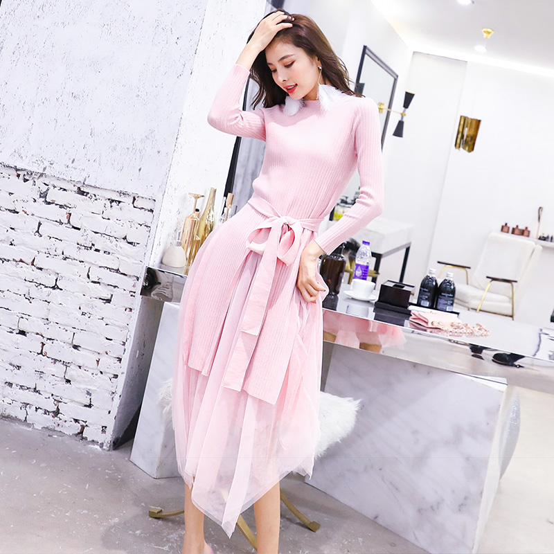 S秀淑女2018秋季新款網紗系帶套裝仙女氣質收腰顯瘦時尚潮