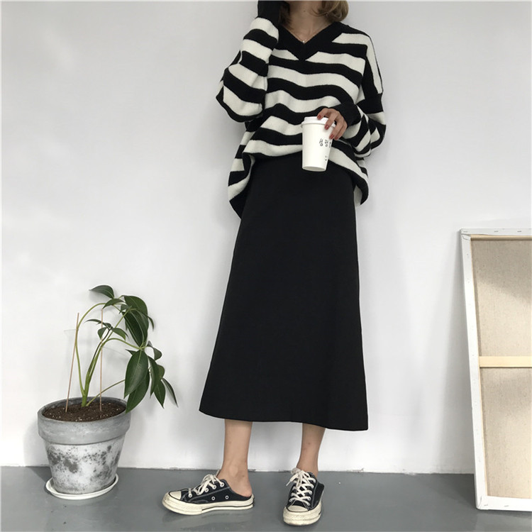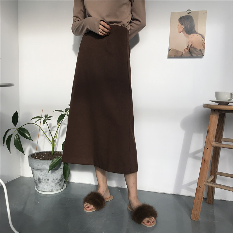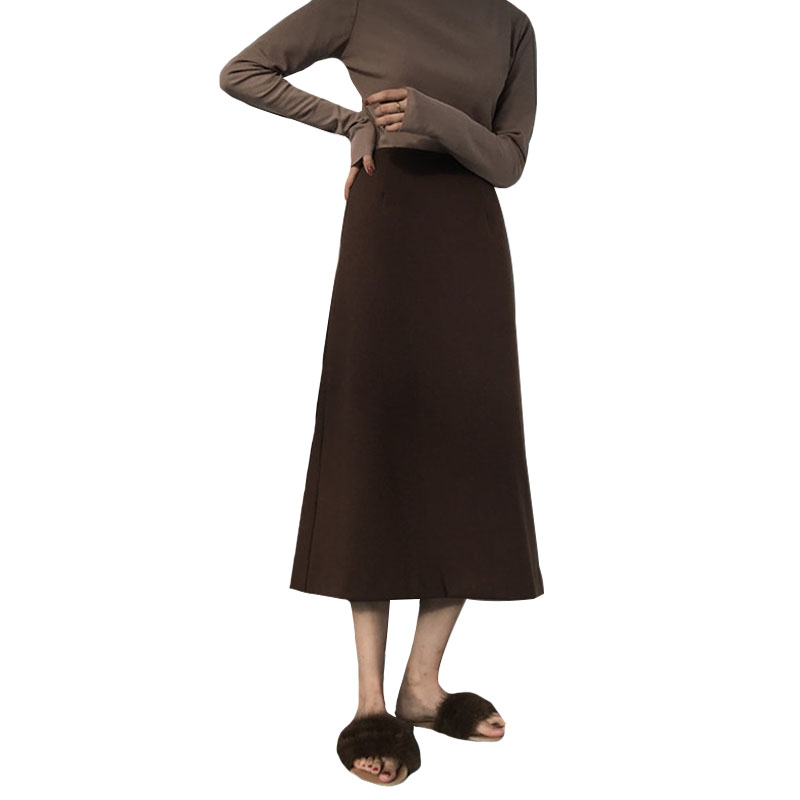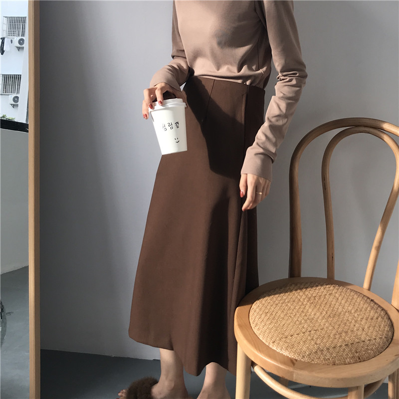 / 秋季韓版氣質純色基礎款中長款A字裙半身裙寬松高腰包臀裙長裙女