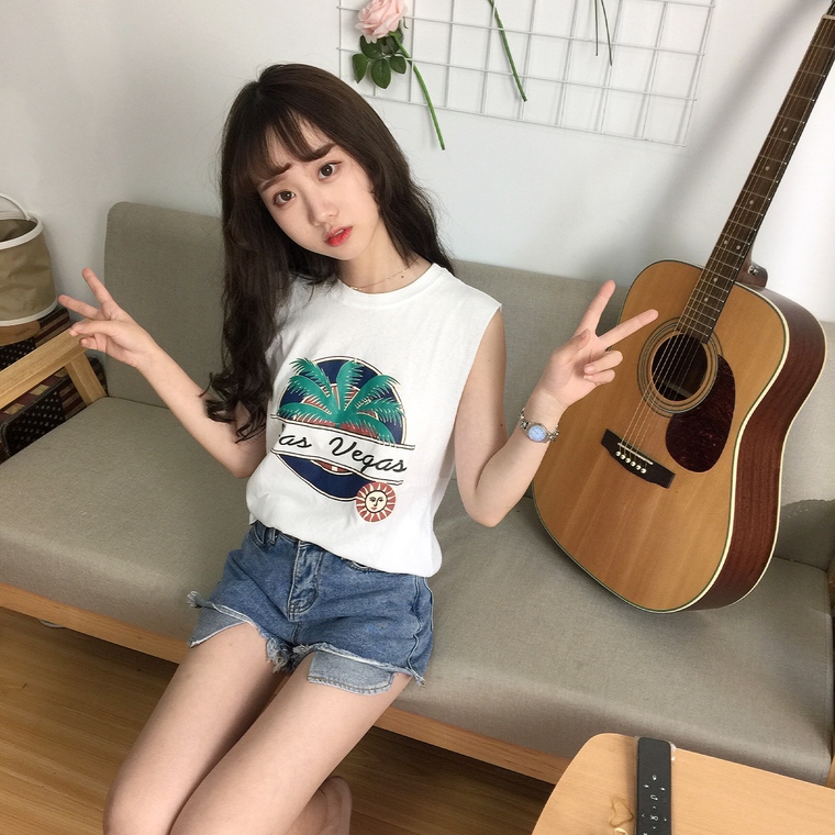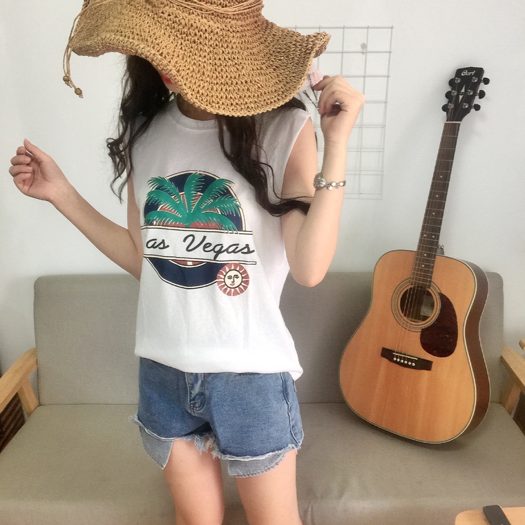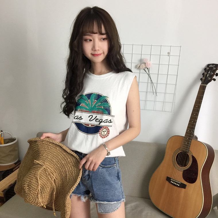 / 春夏新款女裝字母印花寬松顯瘦學生百搭無袖打底外穿背心T恤上衣