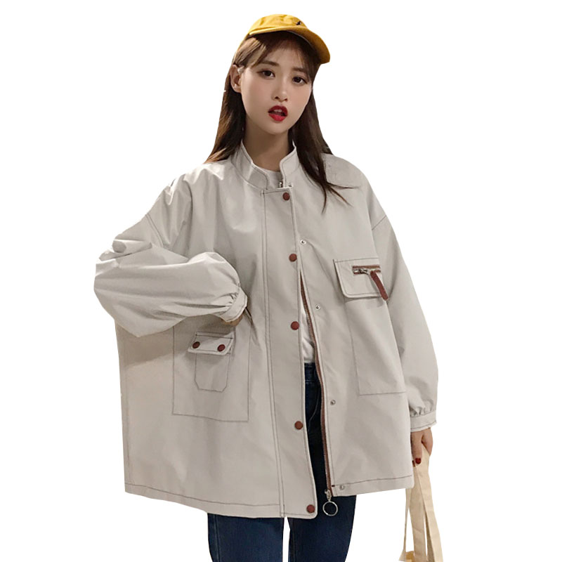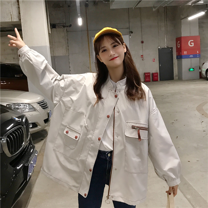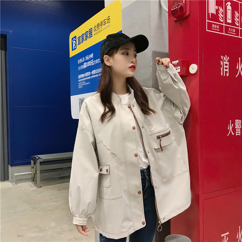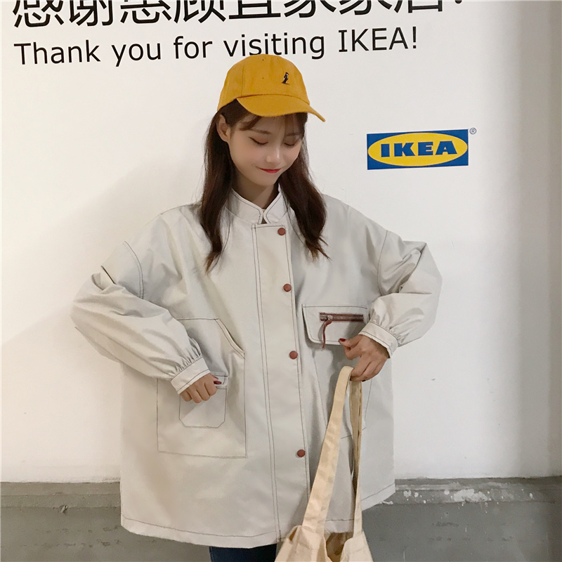 / 2018新款秋季韓版中長款復古工裝立領寬松百搭夾克開衫上衣外套女