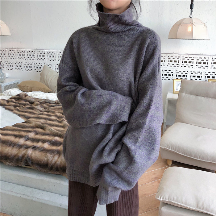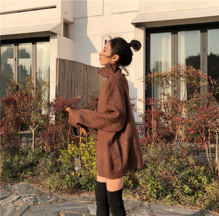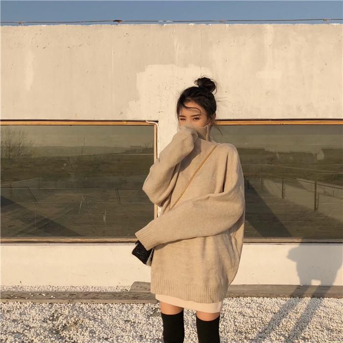 / 慵懶寬松新款韓版秋季中長款顯瘦百搭復古chic上衣女柔軟高領毛衣