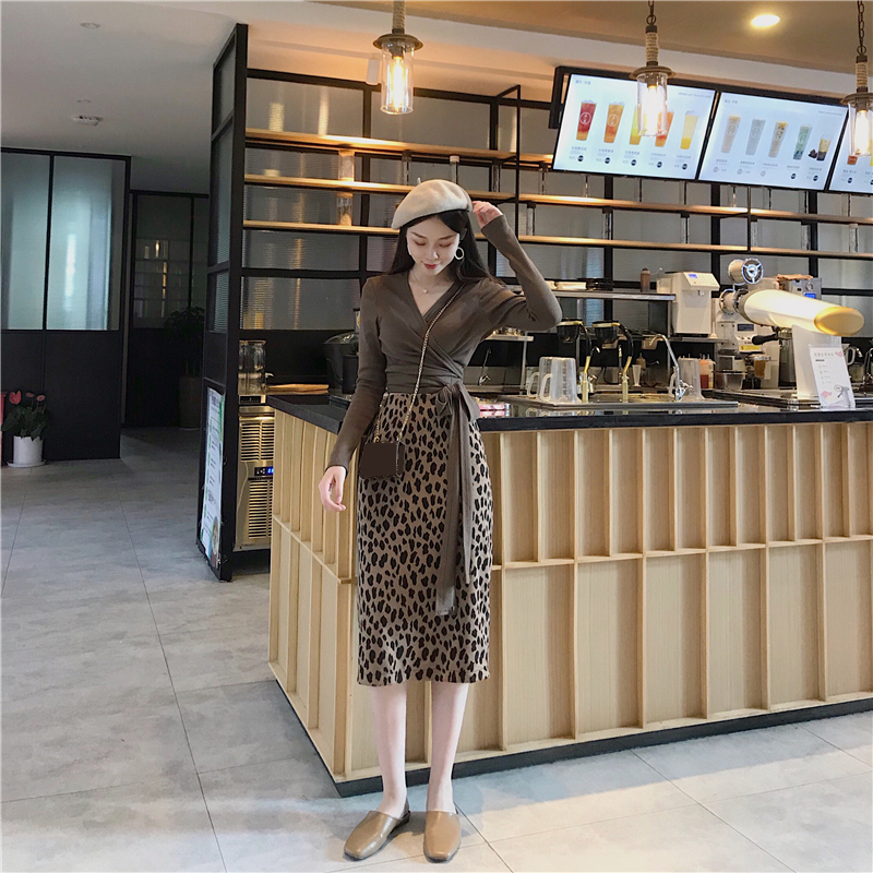 咖色上衣|豹紋裙S