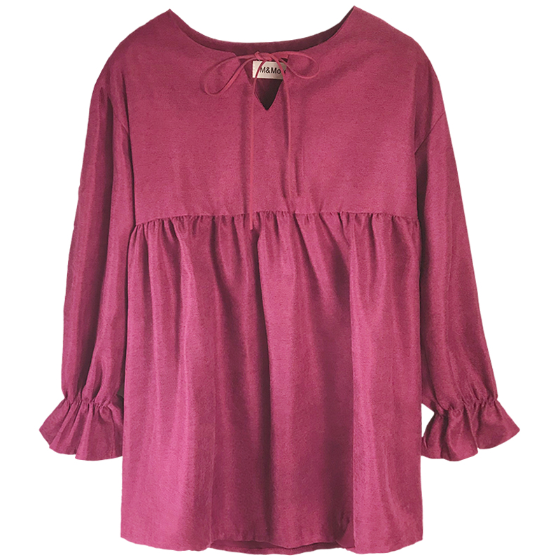 / 春秋新款女裝韓版小清新領口系帶寬松喇叭袖長袖連衣裙娃娃中長裙