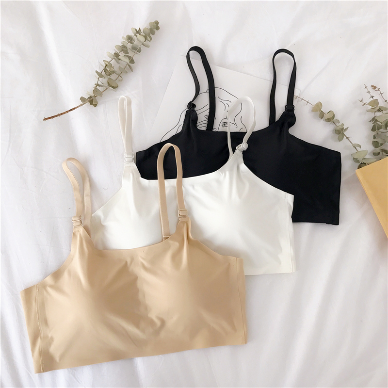 / 夏季韓版修身顯瘦無痕無鋼圈冰絲裹胸吊帶小背心抹胸內衣上衣女士