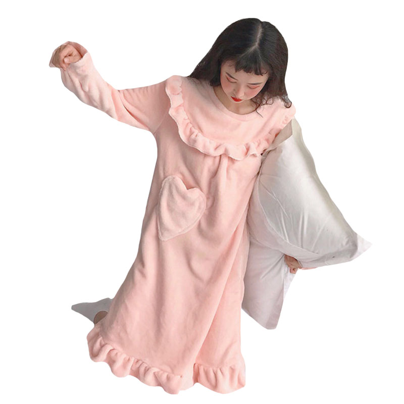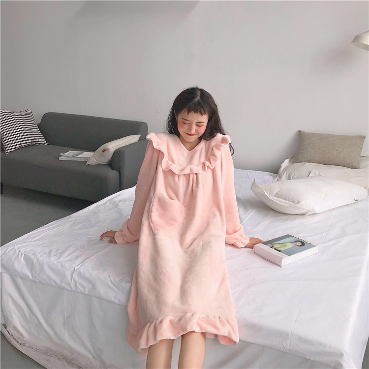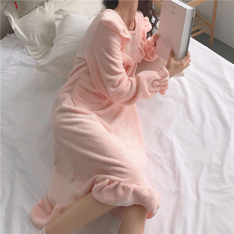/ 秋冬韓版甜美公主睡裙可愛法蘭絨寬松加厚性感長袖睡衣長款裙子女
