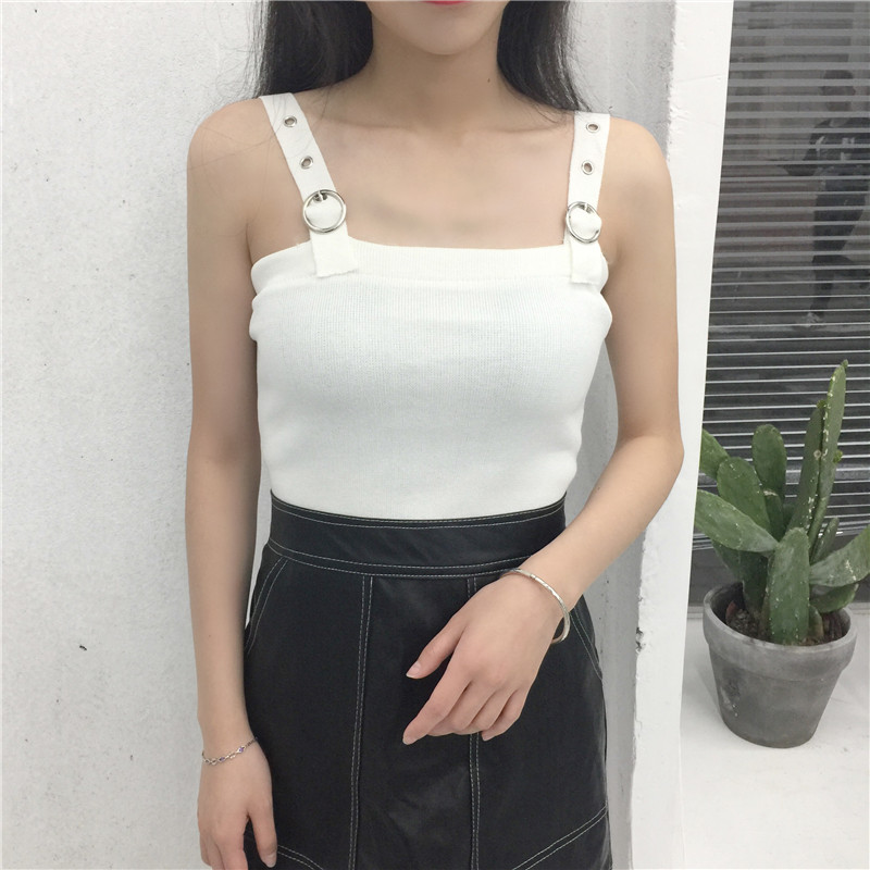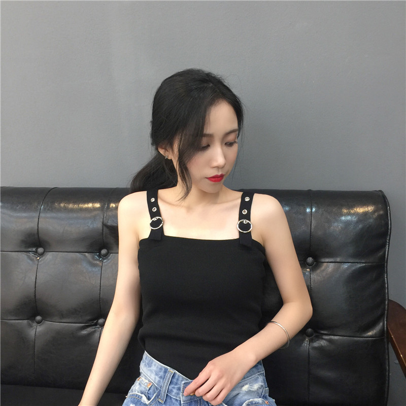 / 春夏新款女裝修身百搭圓環設計可調節肩帶短款露臍小背心打底吊帶