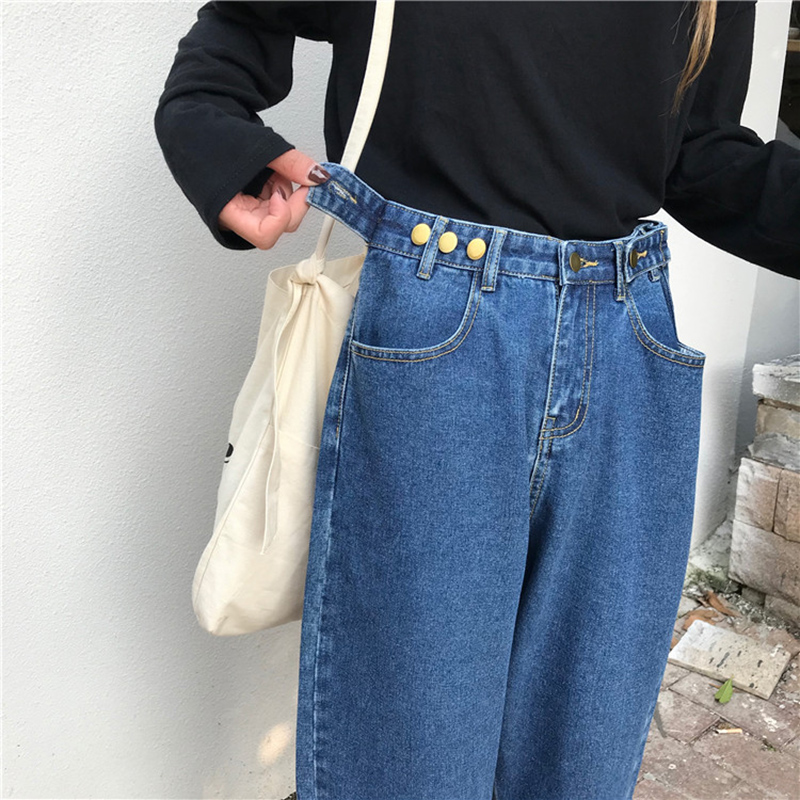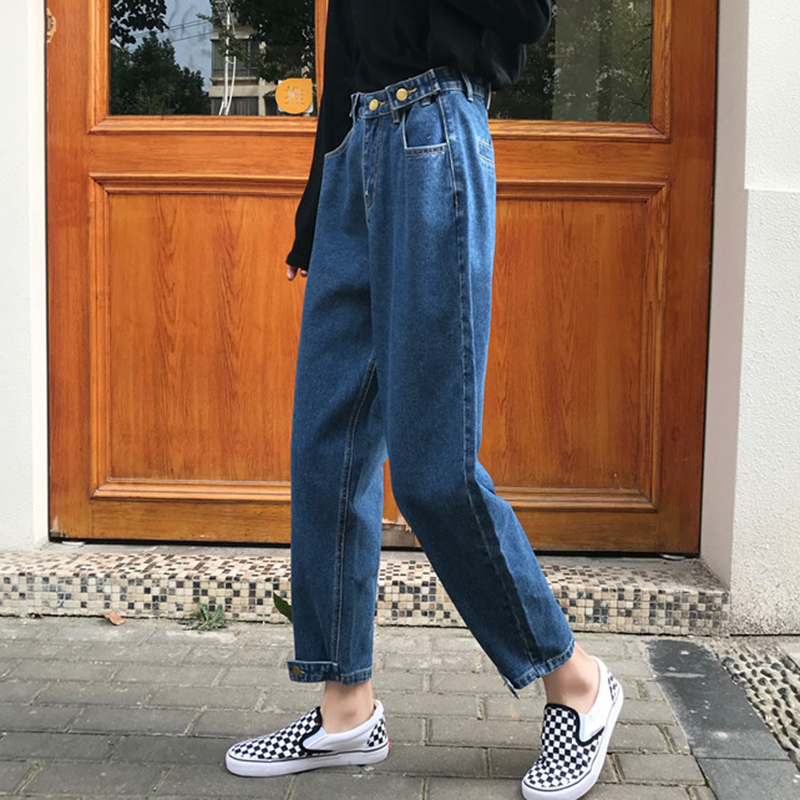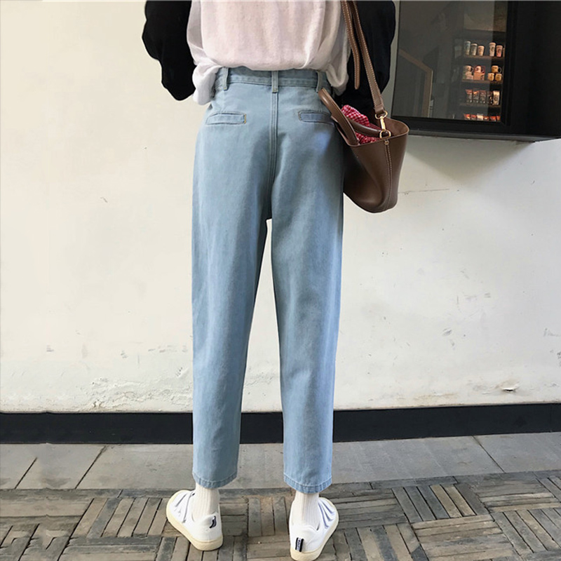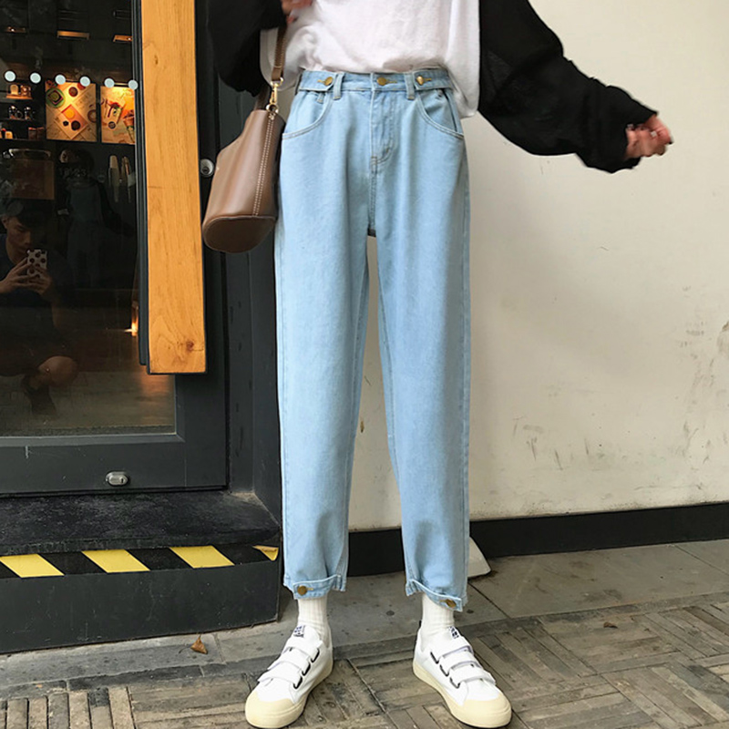 秋裝女新款韓版簡約休閑哈倫褲高腰淺色牛仔褲學生寬松九分褲子潮