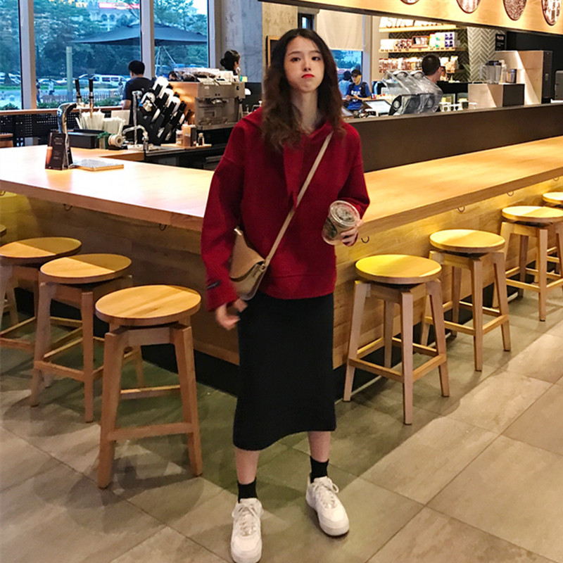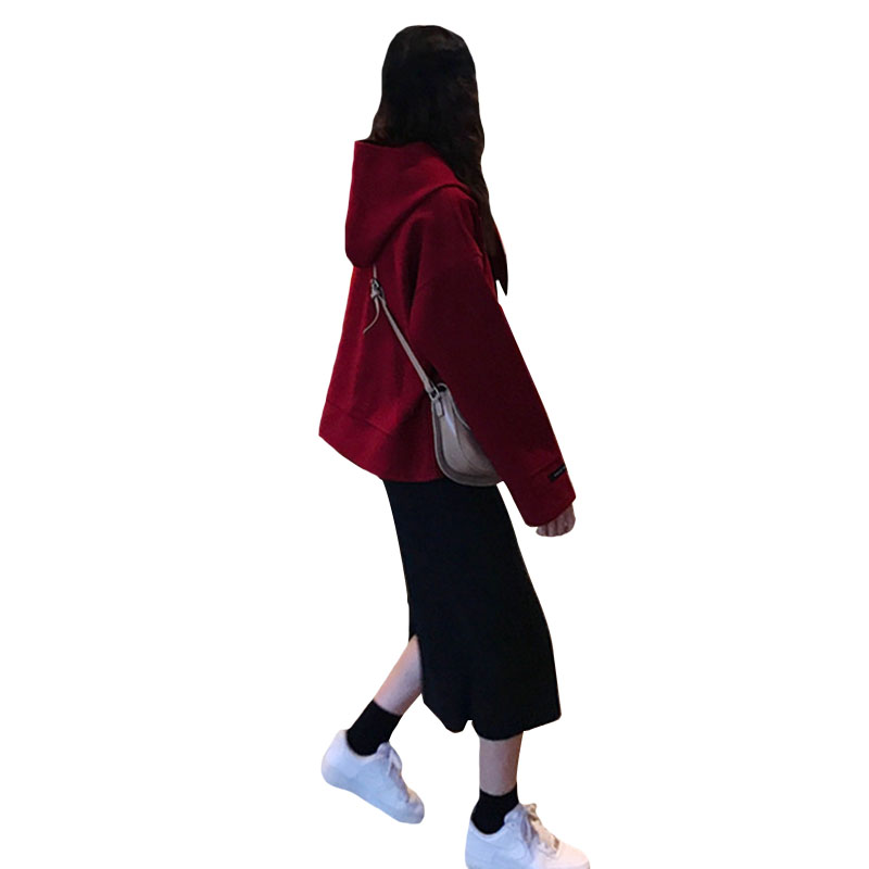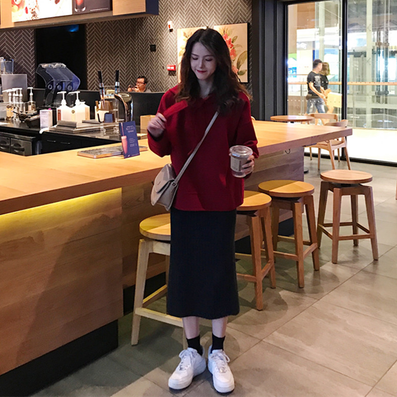 / 韓版時尚休閑套裝秋季女裝chic衛衣外套+開叉包臀裙半身裙兩件套