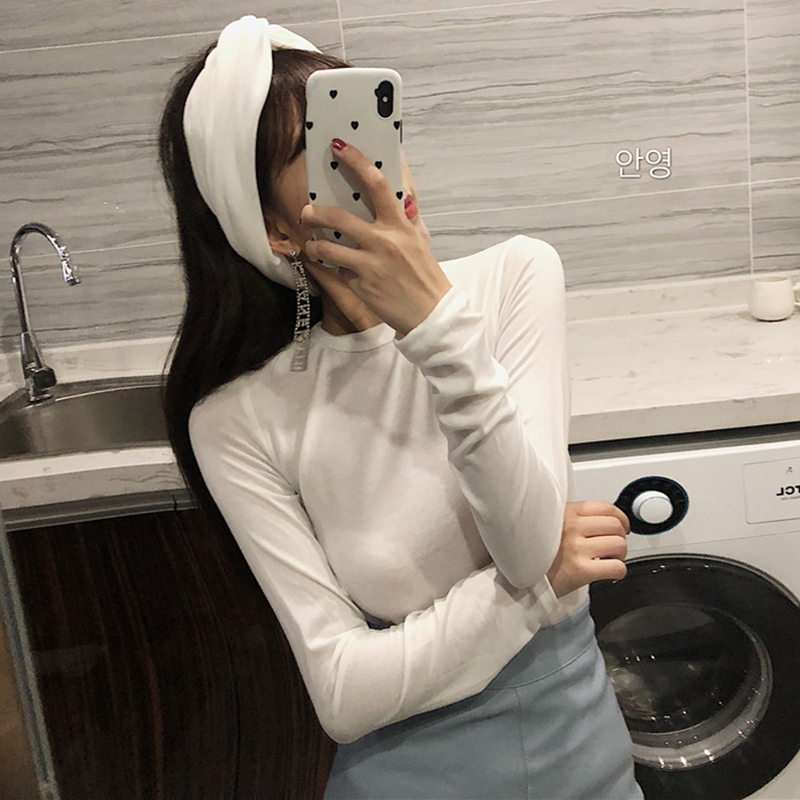 / 抹胸兩件套打底衫女秋裝新款圓領修身黑色長袖t恤韓版緊身上衣服