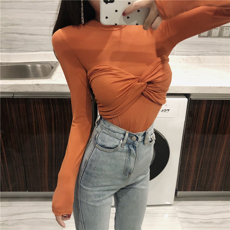抹胸兩件套打底衫女秋裝新款圓領修身黑色長袖t恤韓版緊身上衣服