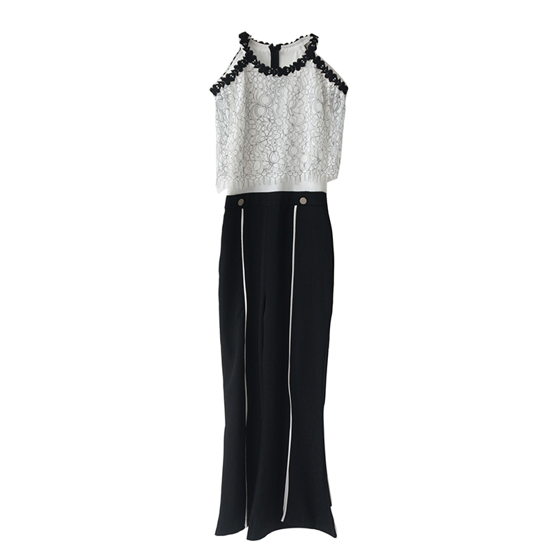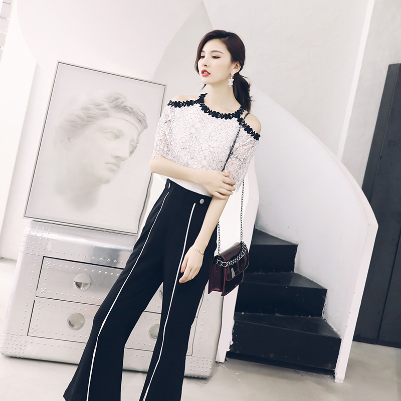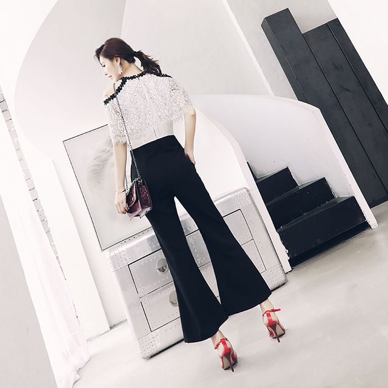 / 連體褲女2018夏季新款露肩上衣高腰顯瘦氣質開叉闊腿褲喇叭連衣褲