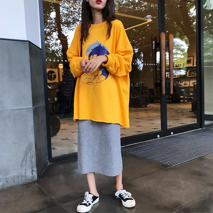/ 韓版時尚休閑套裝秋季個性字母卡通開叉衛衣+半身裙長裙兩件套女
