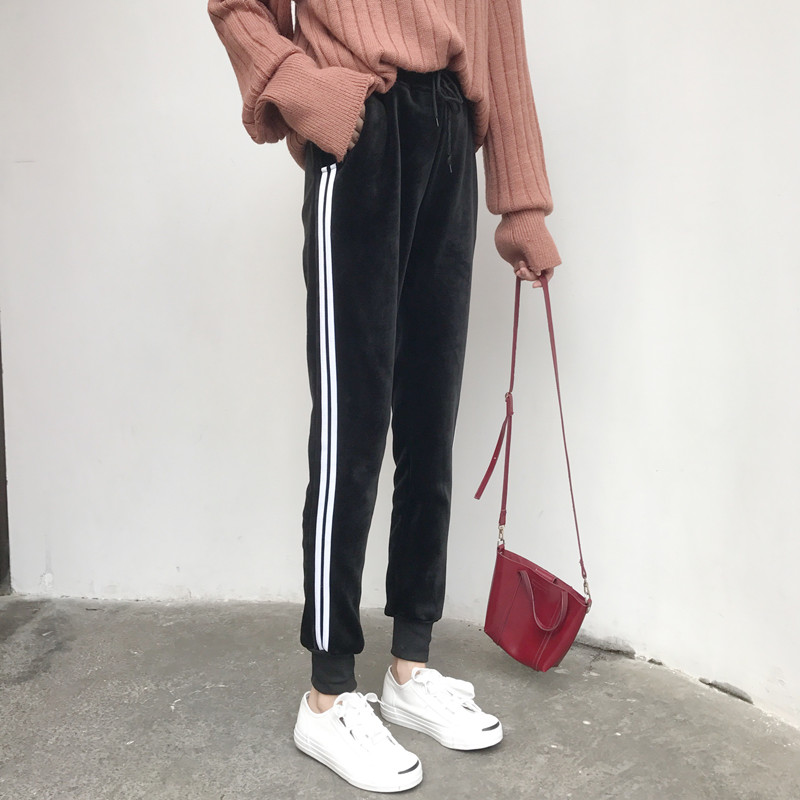 2018新款秋冬韓版加厚加絨哈倫褲寬松運動褲休閑褲長褲學生褲子女