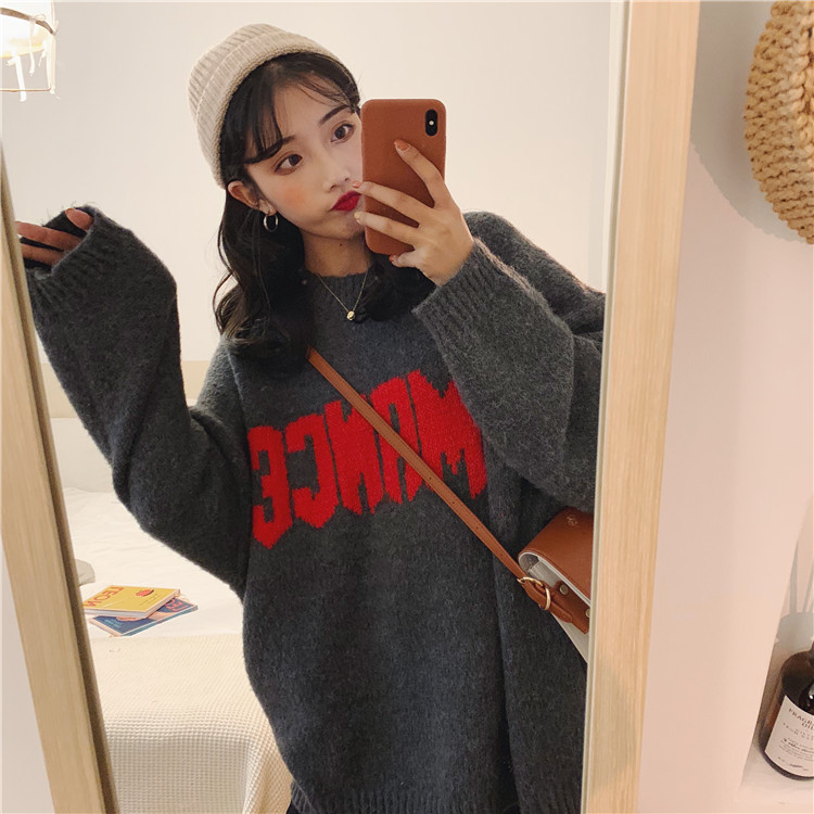 / 2018秋冬新款韓版時尚百搭復古chic上衣女寬松慵懶加厚提花毛衣潮