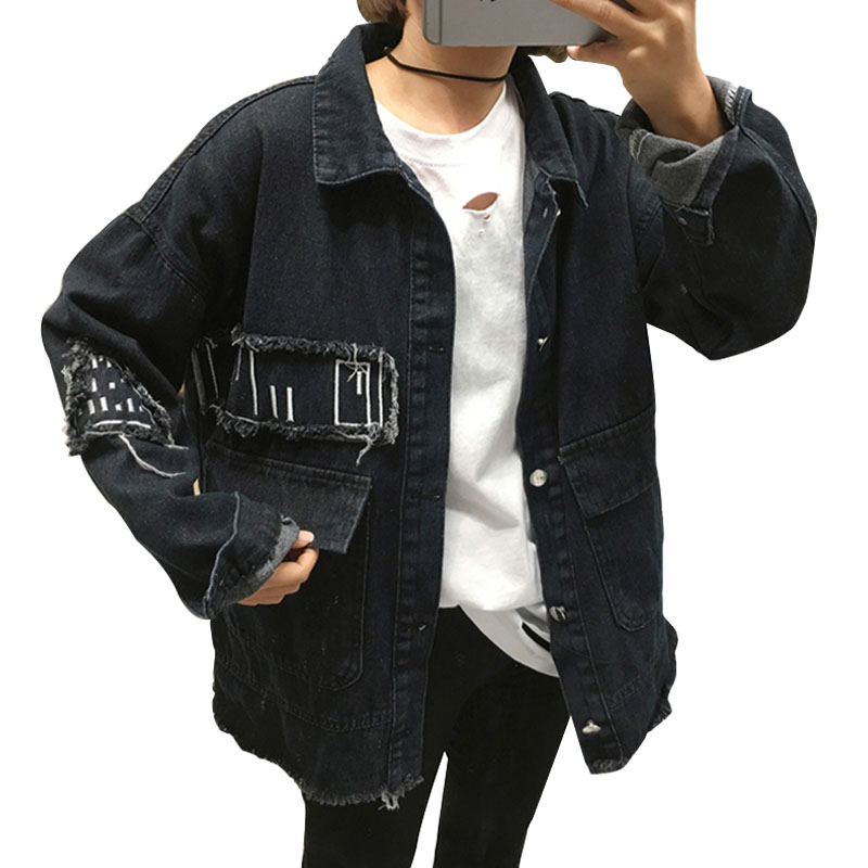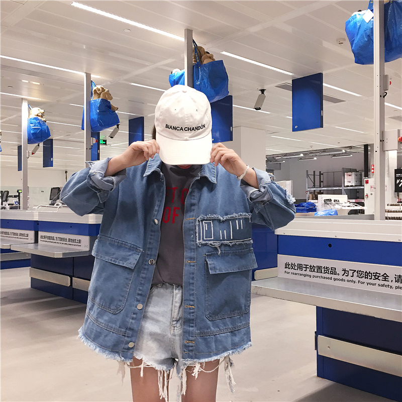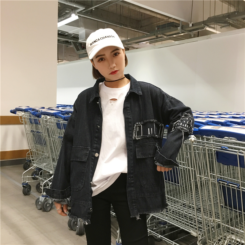 / 秋季女裝韓版時尚百搭BF風寬松磨破牛仔外套長袖休閑夾克開衫上衣