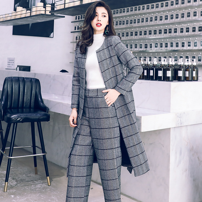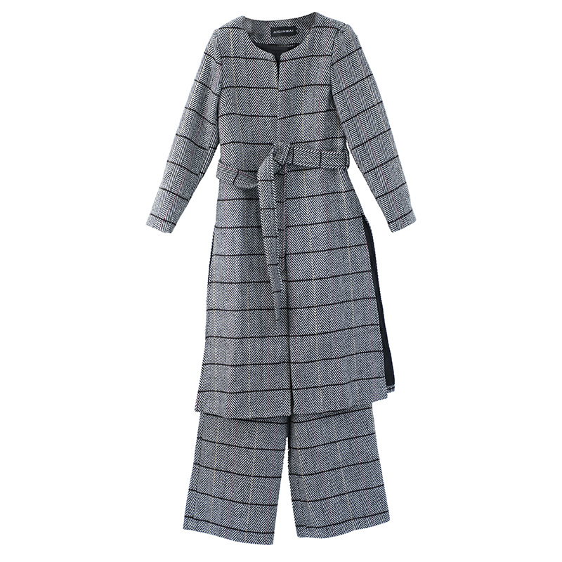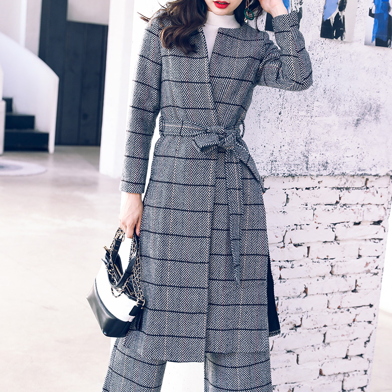 名媛氣質2018新款毛呢套裝女秋裝時尚顯瘦闊腿褲長系帶外套冬