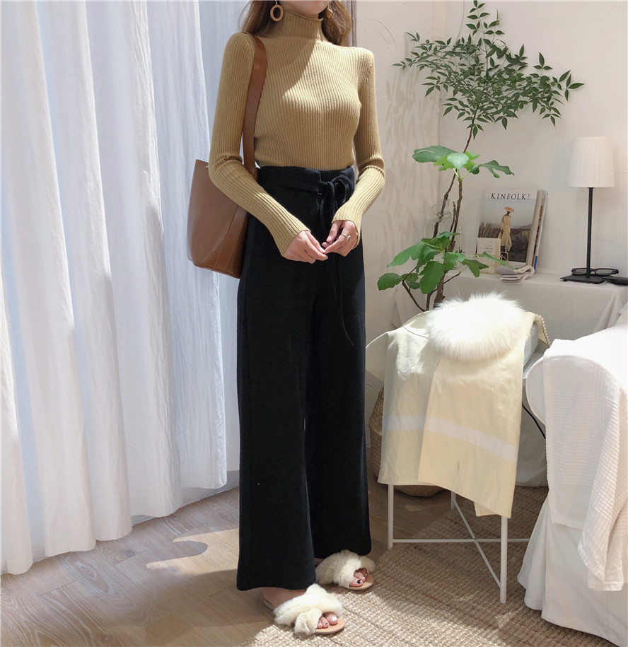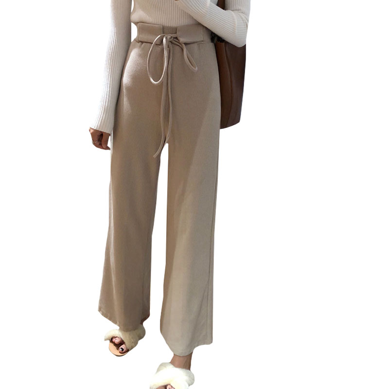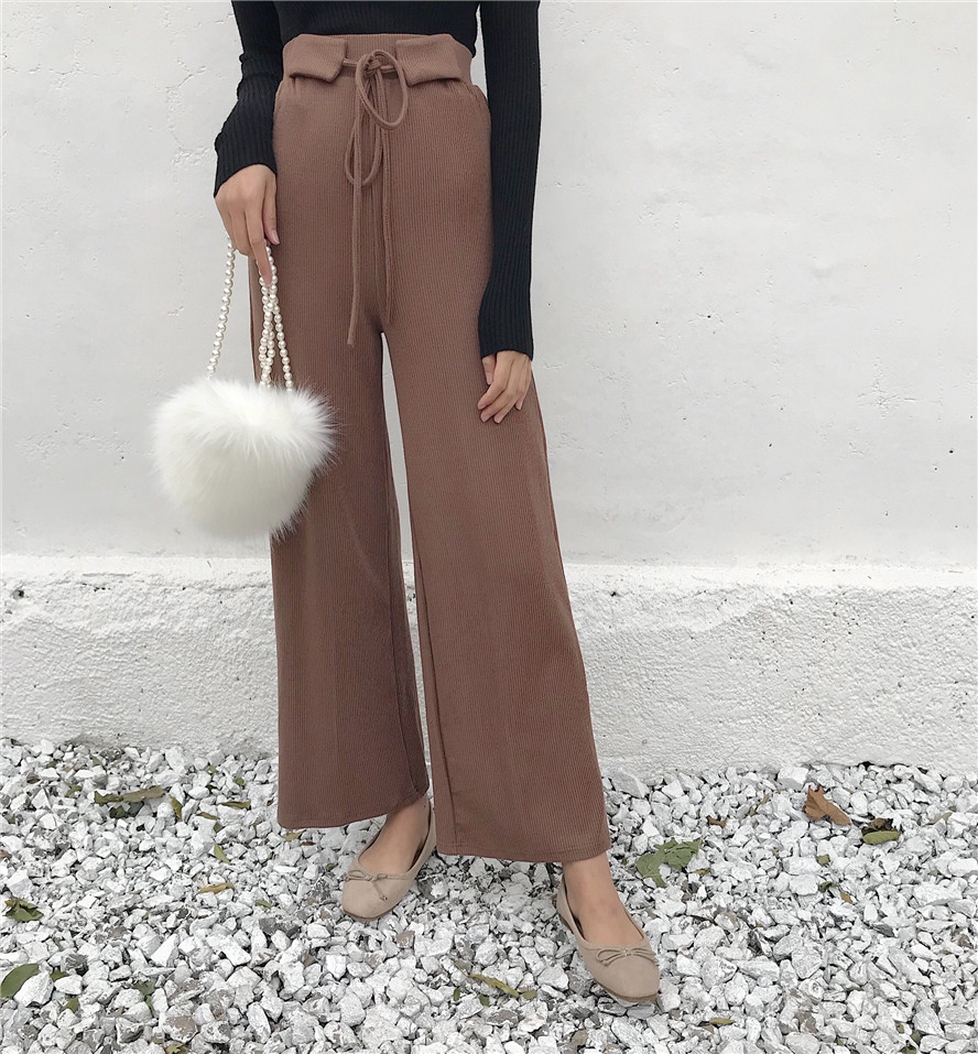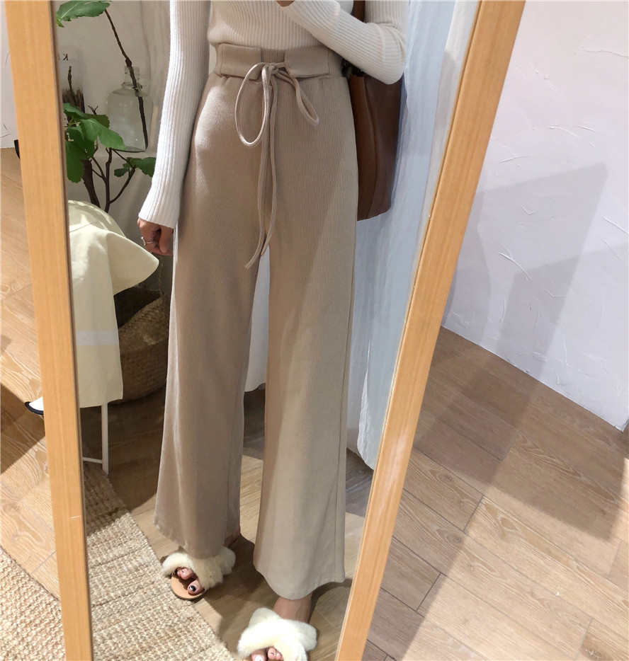 / 秋季韓版系帶高腰針織直筒褲學生褲子寬松顯瘦休閑褲闊腿褲長褲女