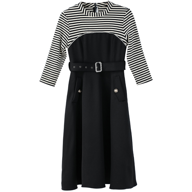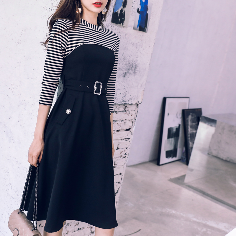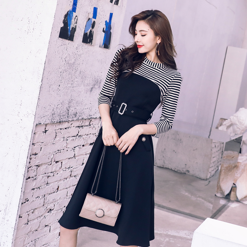 / 名媛拼接連衣裙女中長款2018秋季新款女裝時尚修身收腰chic早秋裙