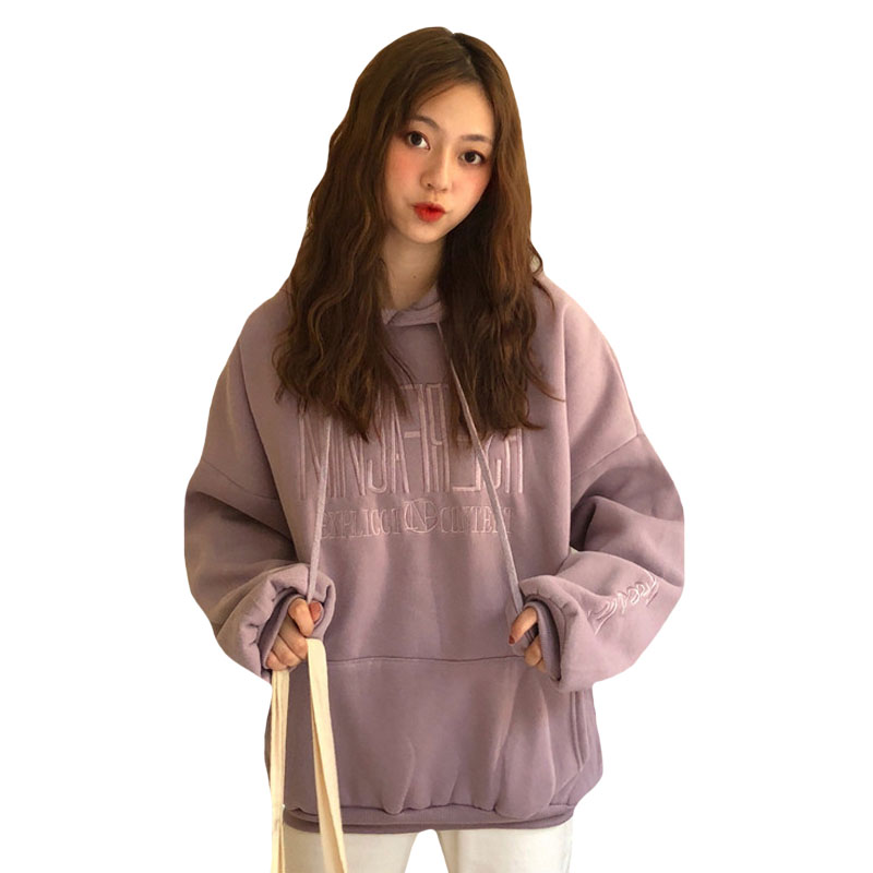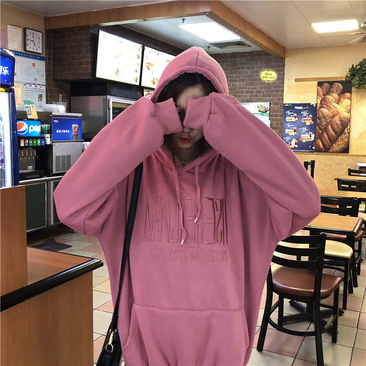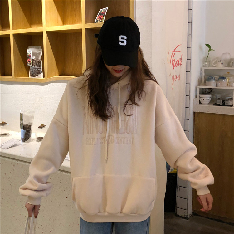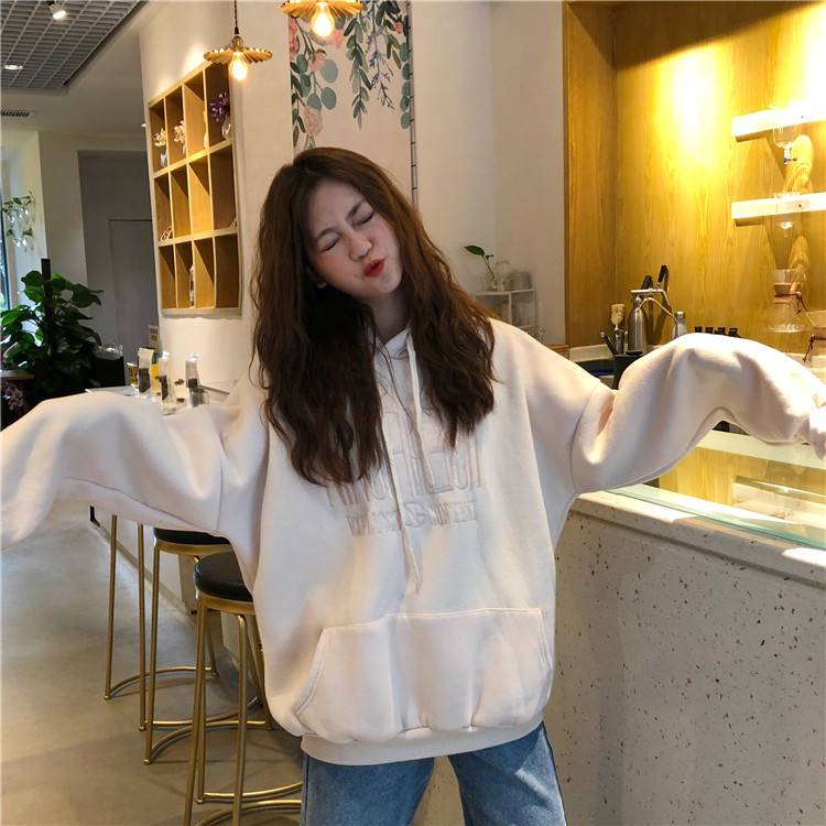 秋冬女裝韓版寬松字母刺繡加絨加厚連帽套頭pp home超火衛衣外套