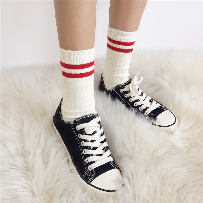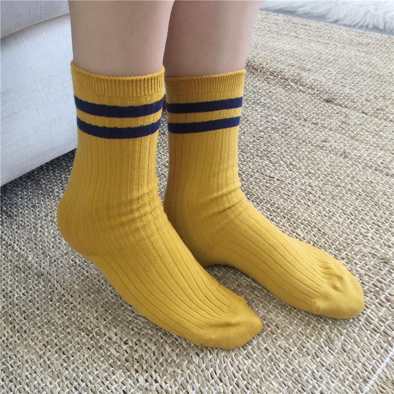 / 秋冬時尚學院風百搭個性條紋中筒襪棉襪學生吸濕排汗保暖襪子女士
