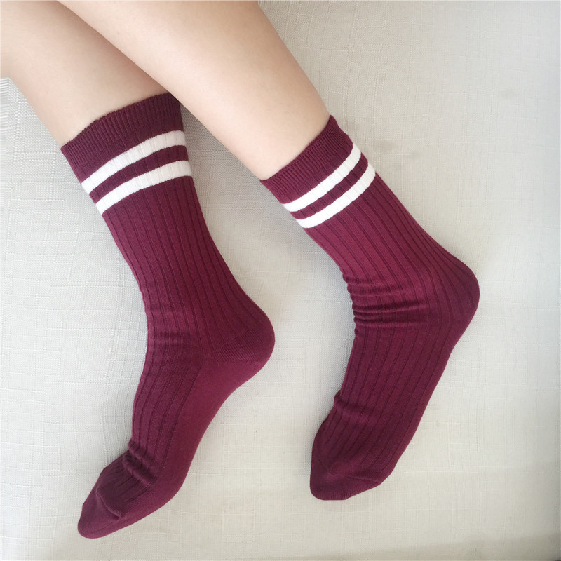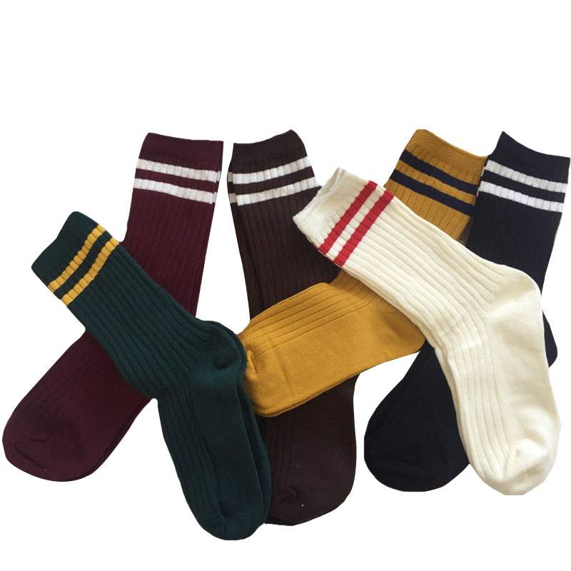 秋冬時尚學院風百搭個性條紋中筒襪棉襪學生吸濕排汗保暖襪子女士