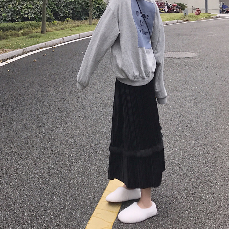 / 秋冬韓版復古寬松百搭絲絨百褶裙半身裙高腰A字裙長裙學生裙子女