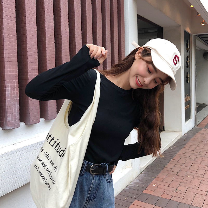 / 秋季女裝韓版基礎款氣質百搭純色修身顯瘦長袖打底衫T恤上衣學生
