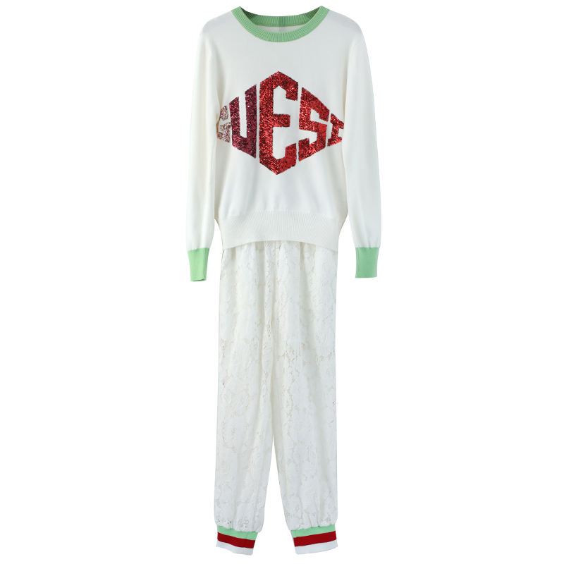/ 名媛氣質2018秋季新款針織上衣衛衣打底衫蕾絲寬松小腿褲兩件套裝