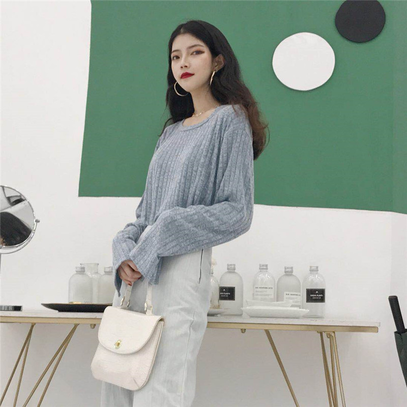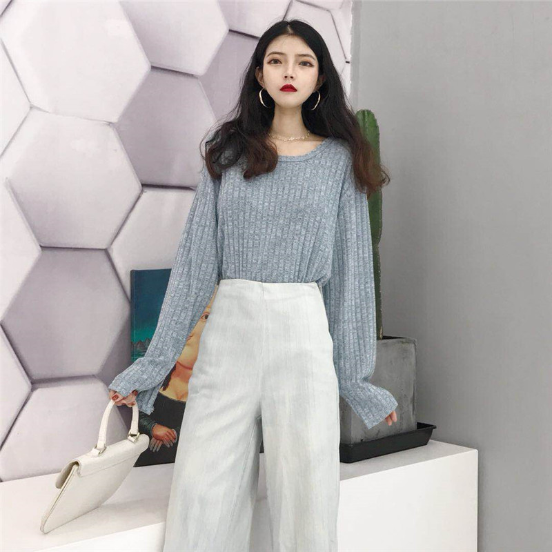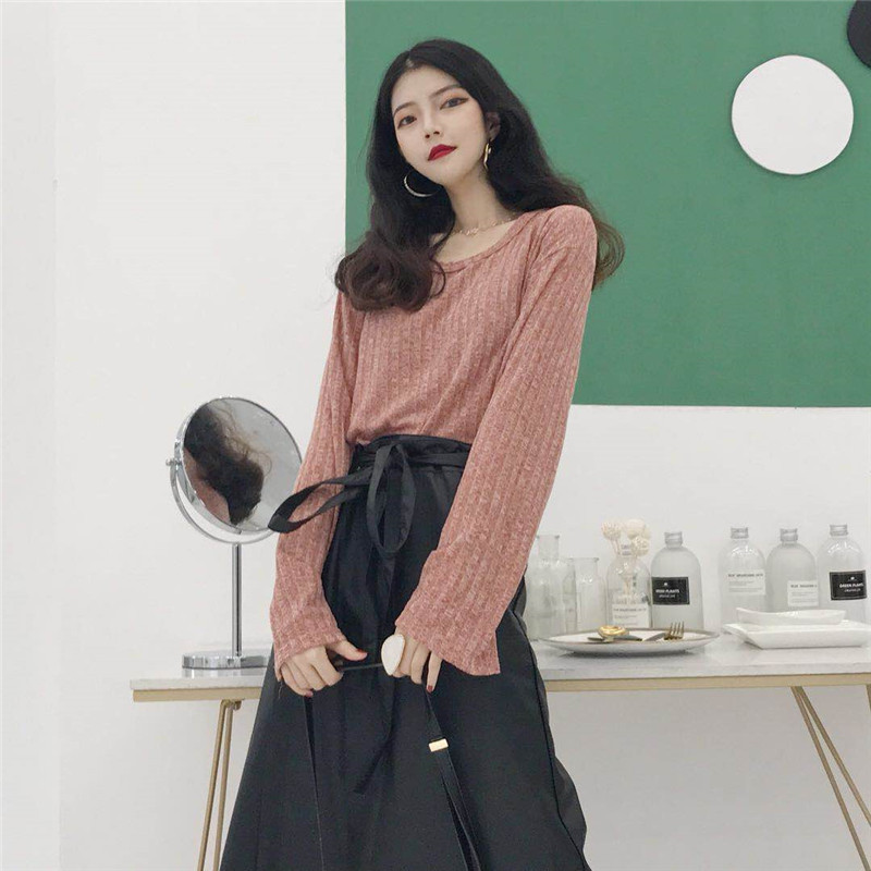 / 韓版女裝百搭修身顯瘦開叉長袖T恤純色防曬罩衫2018秋裝新款上衣