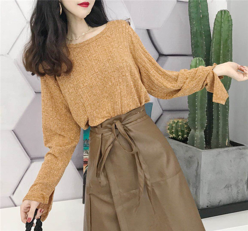韓版女裝百搭修身顯瘦開叉長袖T恤純色防曬罩衫2018秋裝新款上衣
