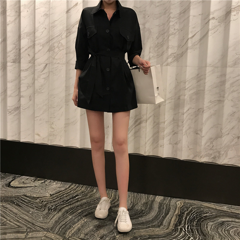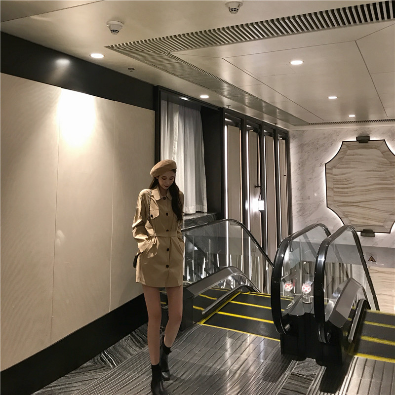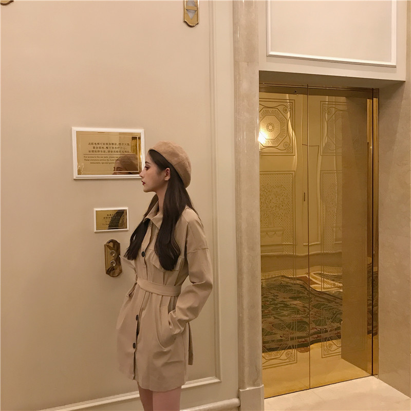 / 小香風時尚秋裝chic氣質中長款風衣兩穿翻領純色開衫綁帶顯瘦外套