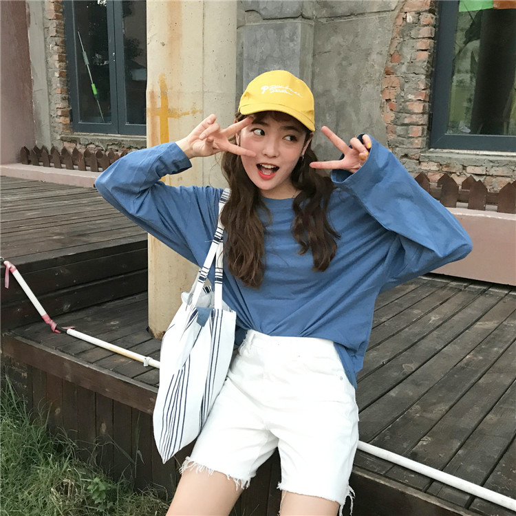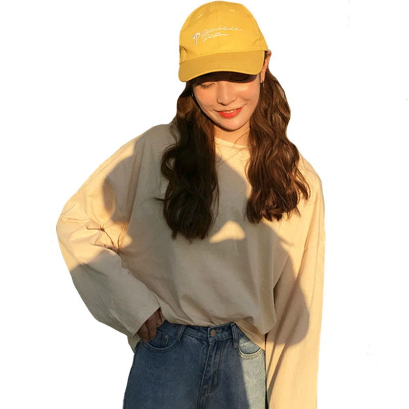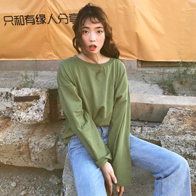 / 秋裝女裝韓版基礎款寬松簡約百搭純色長袖圓領T恤打底衫休閑上衣