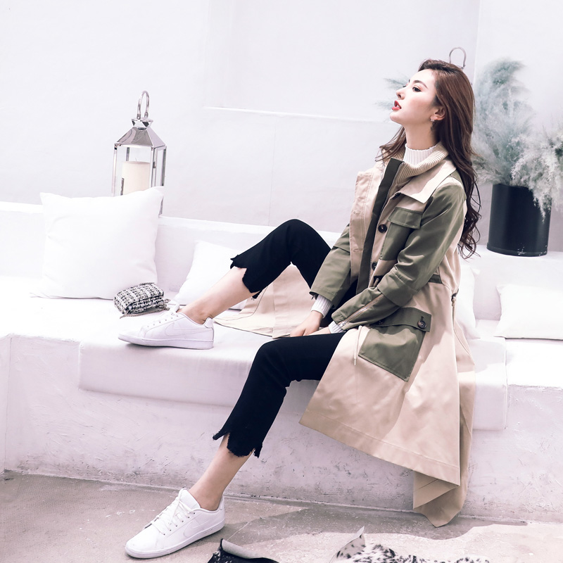 / chic早秋休閑中長款風衣女韓版秋裝2018新款不規則寬松外套潮高領