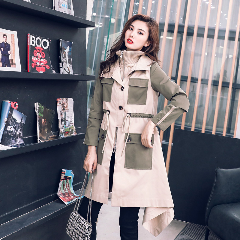 chic早秋休閑中長款風衣女韓版秋裝2018新款不規則寬松外套潮高領