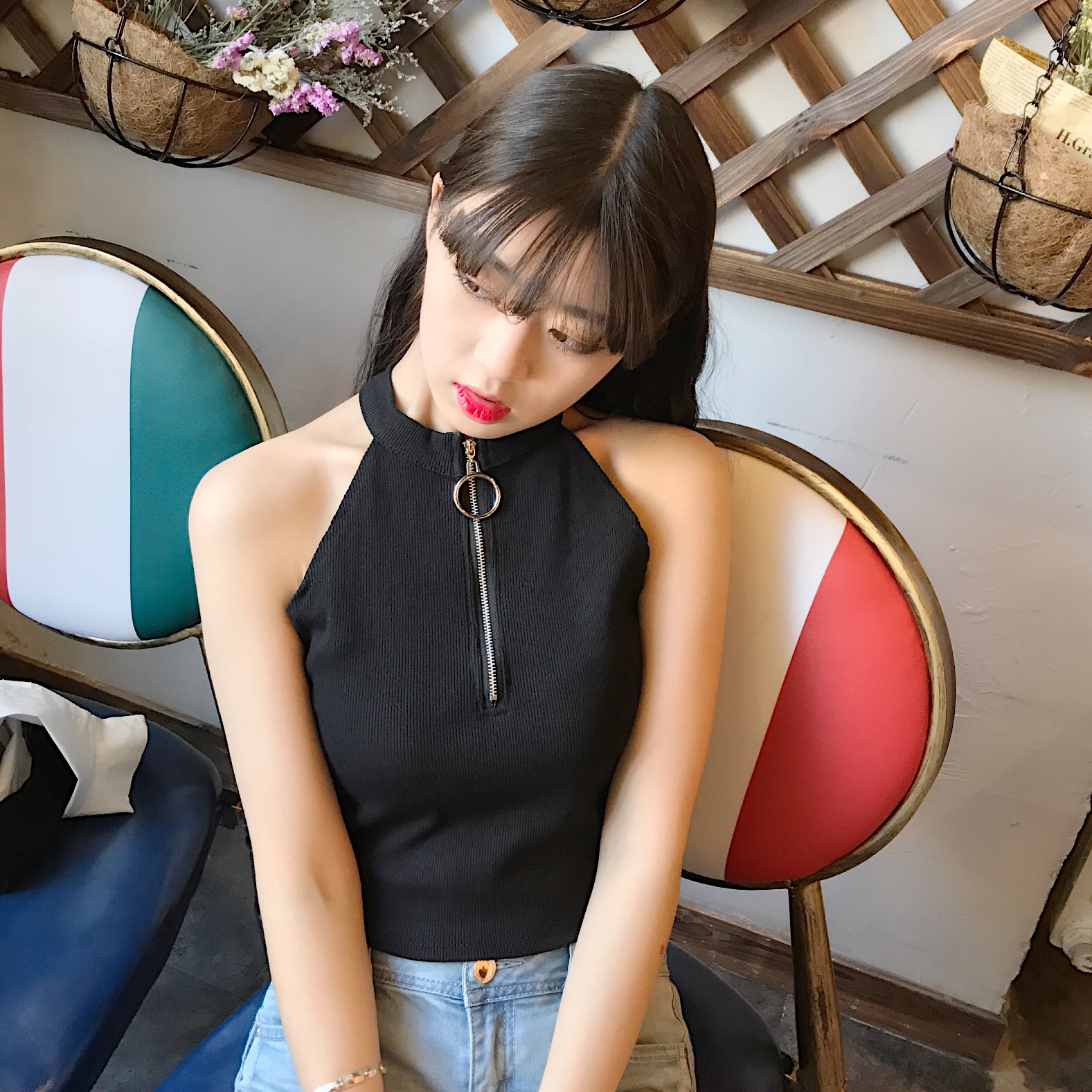 掛脖吊帶背心性感上衣女夏外穿百搭學生露肩修身顯瘦露臍短款打底