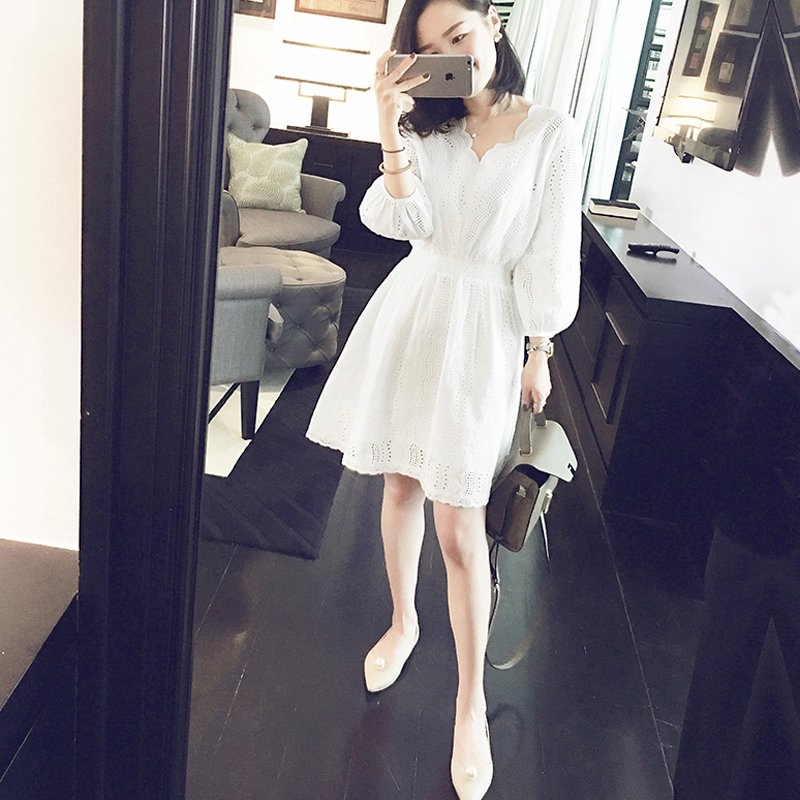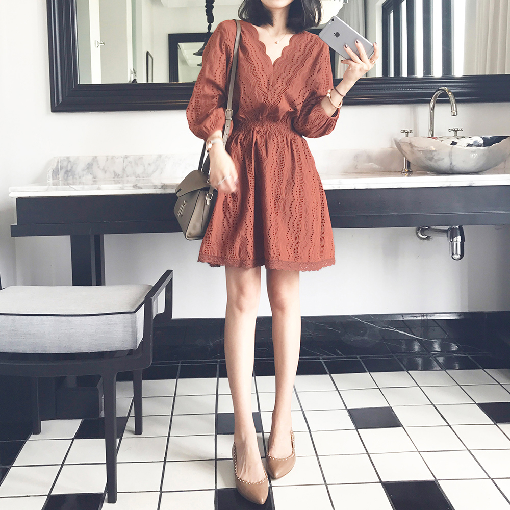2018夏季韓版新款氣質小清新裙子冷淡風復古溫柔風心機蕾絲連衣裙