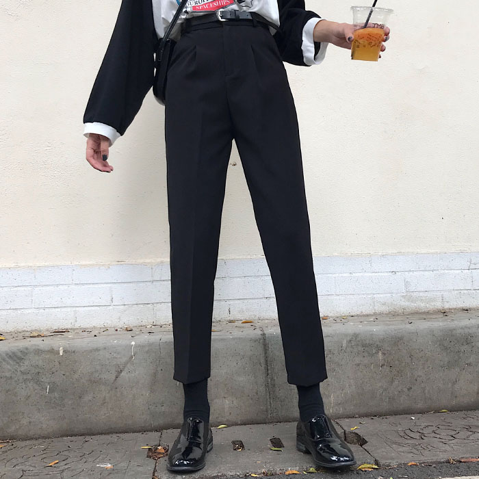 秋季女裝韓版寬松顯瘦直筒褲九分褲學生褲子高腰煙管褲西褲休閑褲