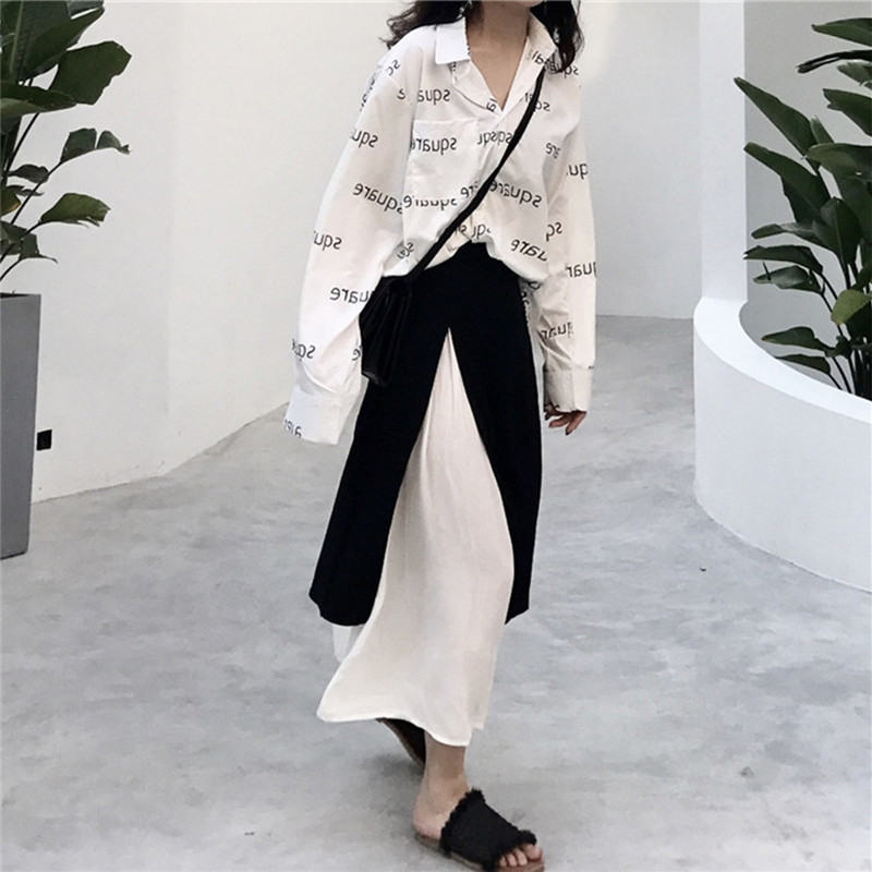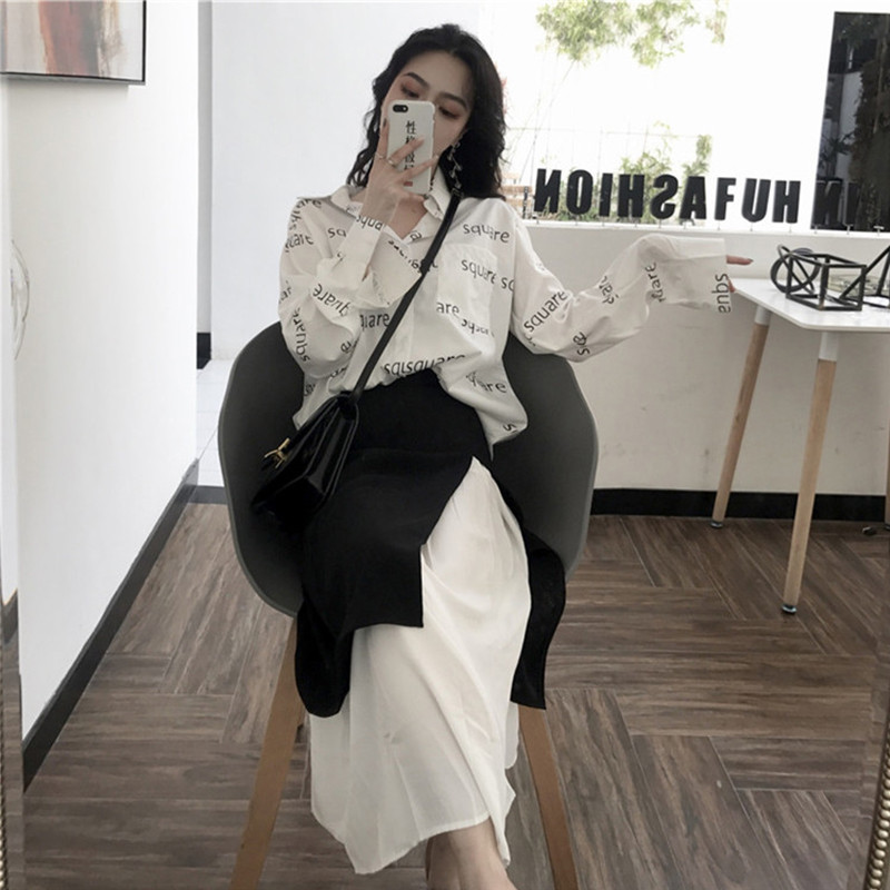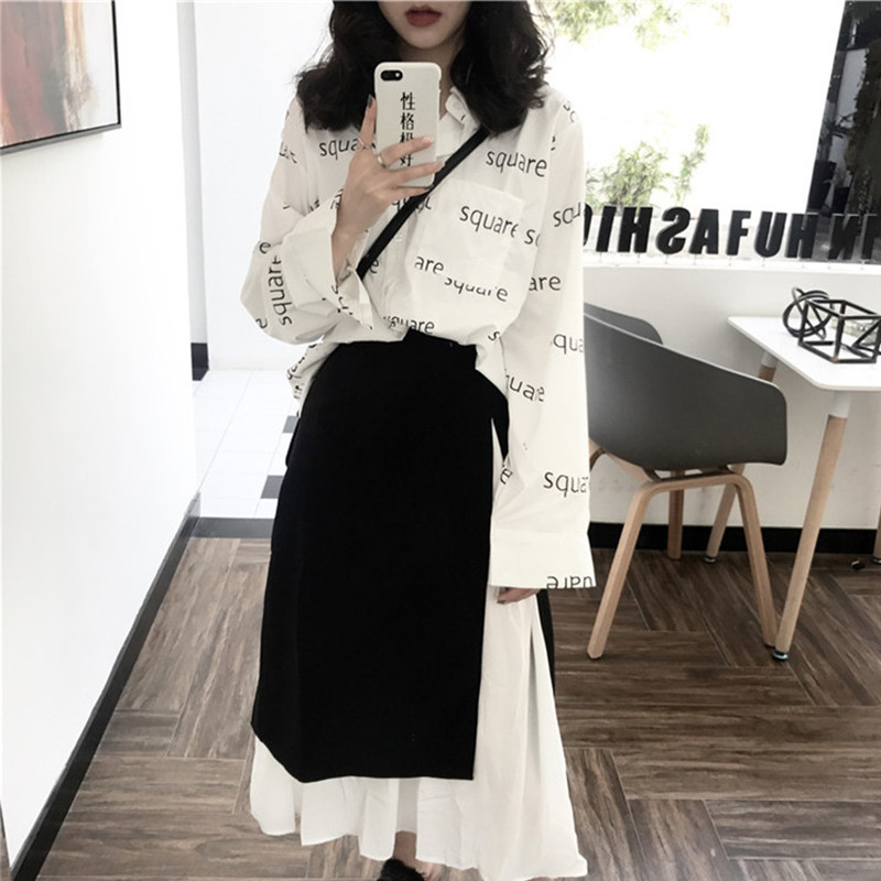 7060字母上衣+黑色半身裙