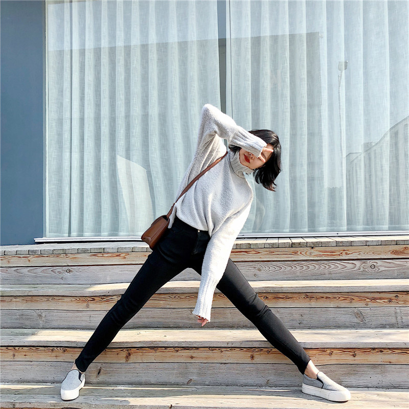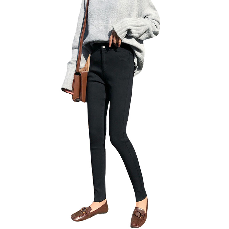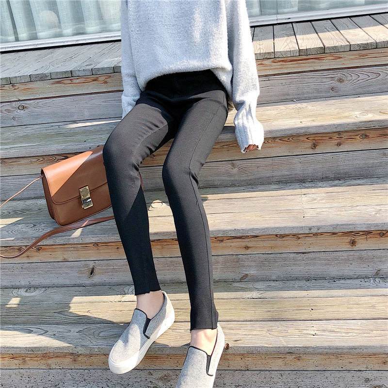 / 秋季韓版彈力修身顯瘦加絨加厚毛邊小腳褲鉛筆褲休閑褲打底褲女褲