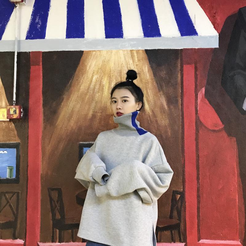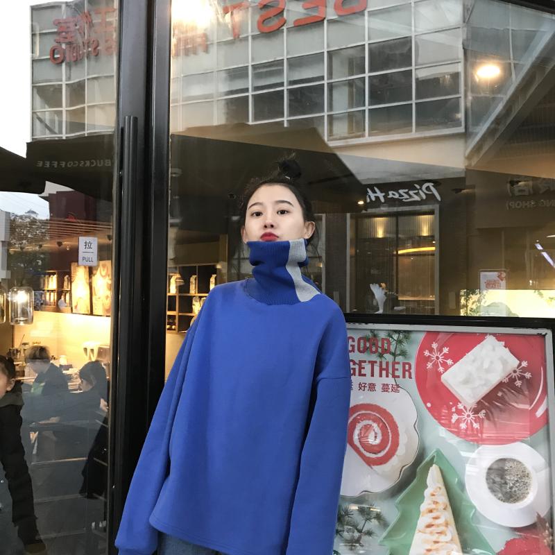/ 秋冬女裝韓版寬松拼色高領加絨加厚套頭pp home超火衛衣上衣外套