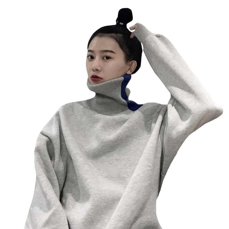 秋冬女裝韓版寬松拼色高領加絨加厚套頭pp home超火衛衣上衣外套