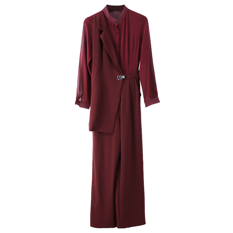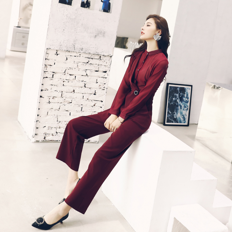 歐洲站秋裝女2018新款歐貨潮透視西裝領拼接不規則長袖連體闊腿褲