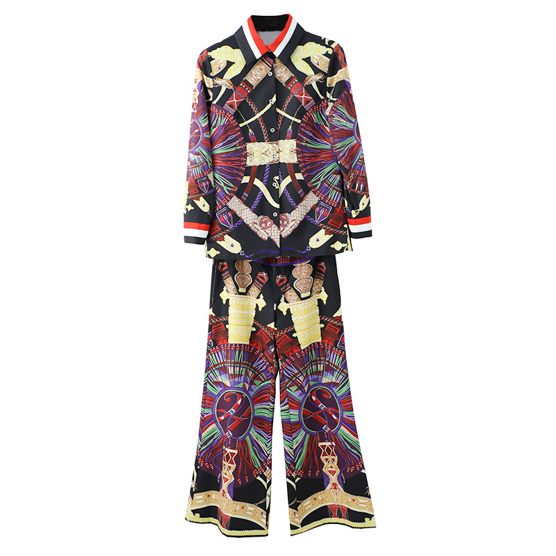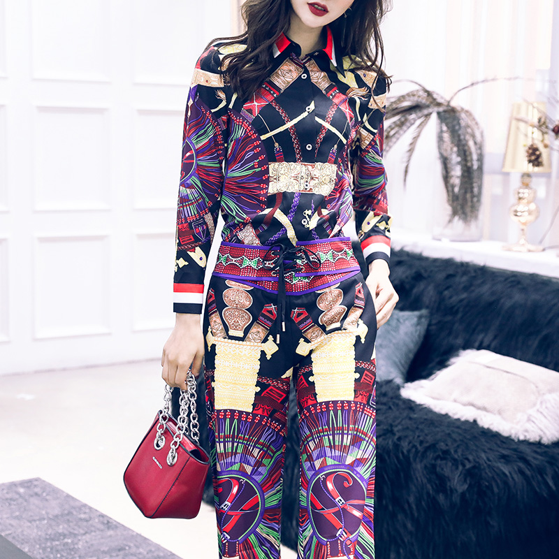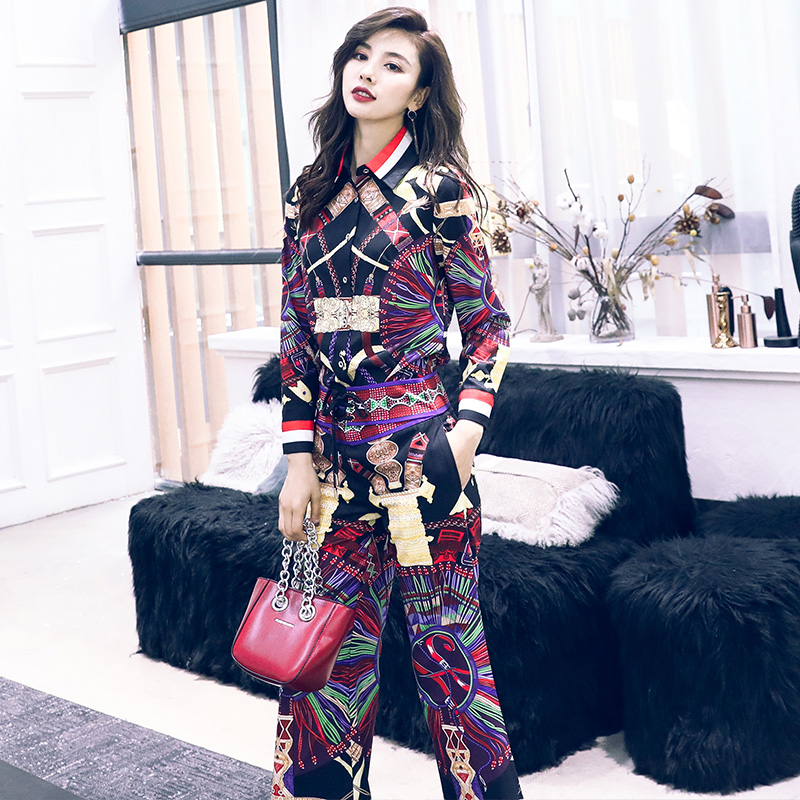 / 名媛時尚外套九分褲兩件套2018秋冬裝新款氣質印花休閑套裝女