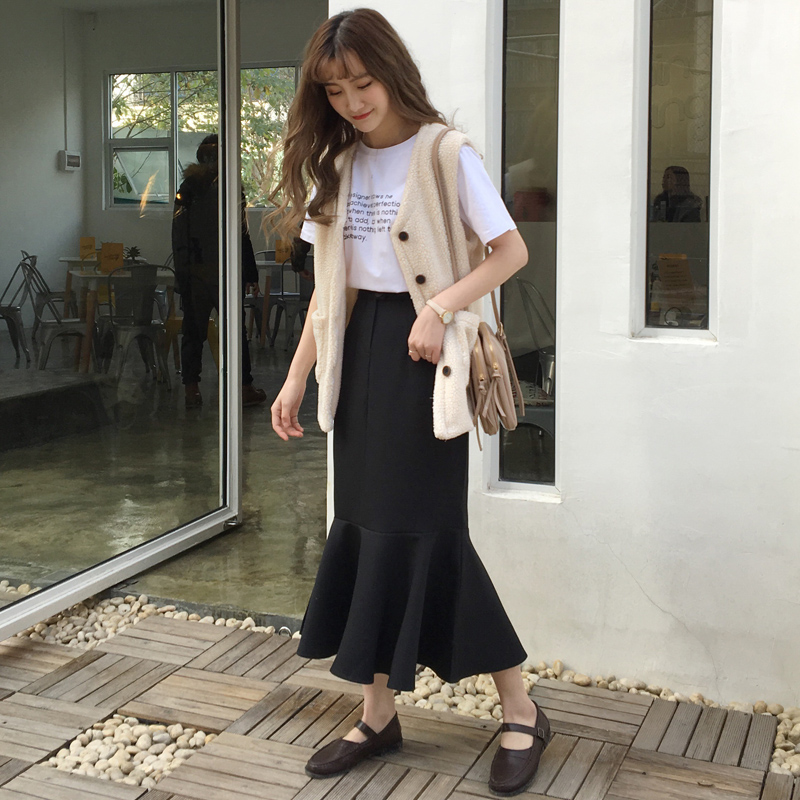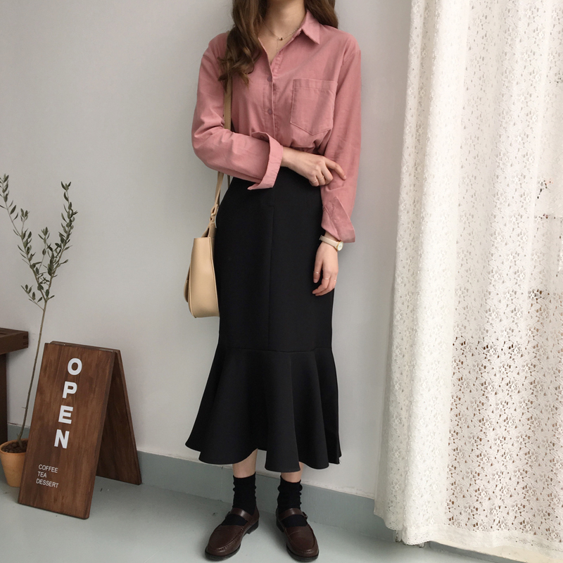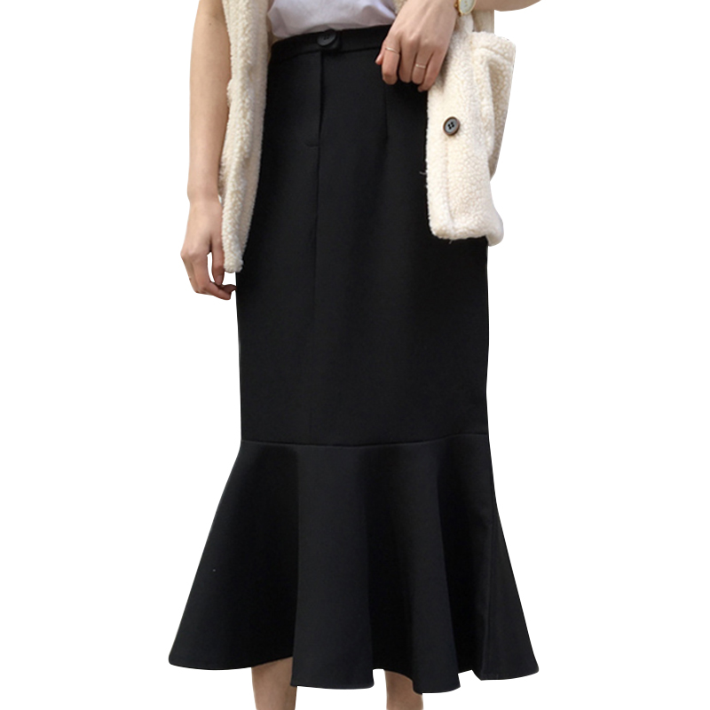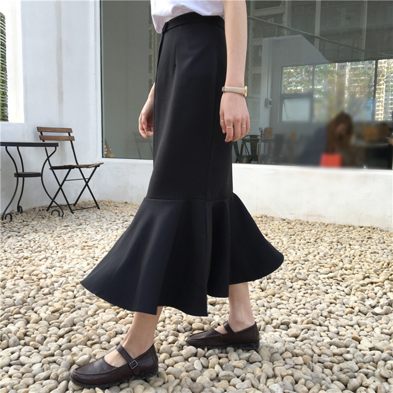 / 春夏新款女裝氣質高腰修身顯瘦魚尾荷葉邊中長款學生包臀半身裙女