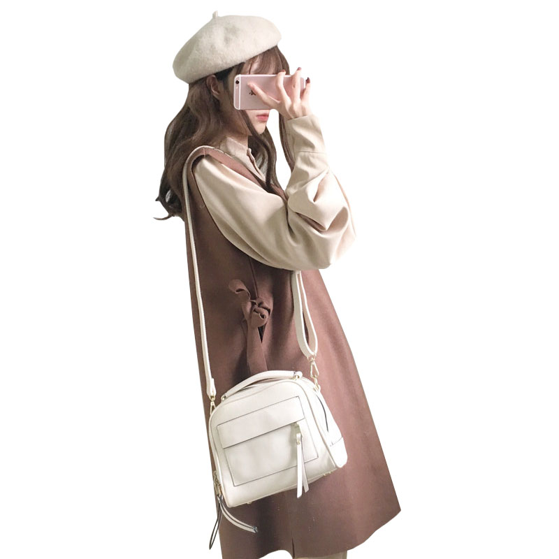 韓版時尚休閑套裝秋季chic復古純色襯衣+毛呢背心連衣裙兩件套女